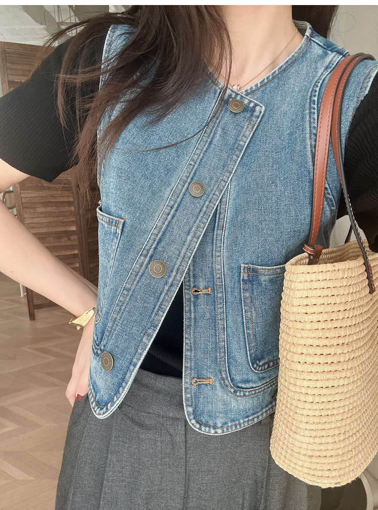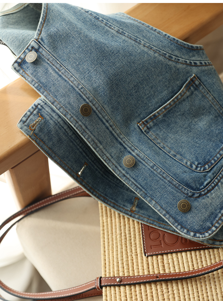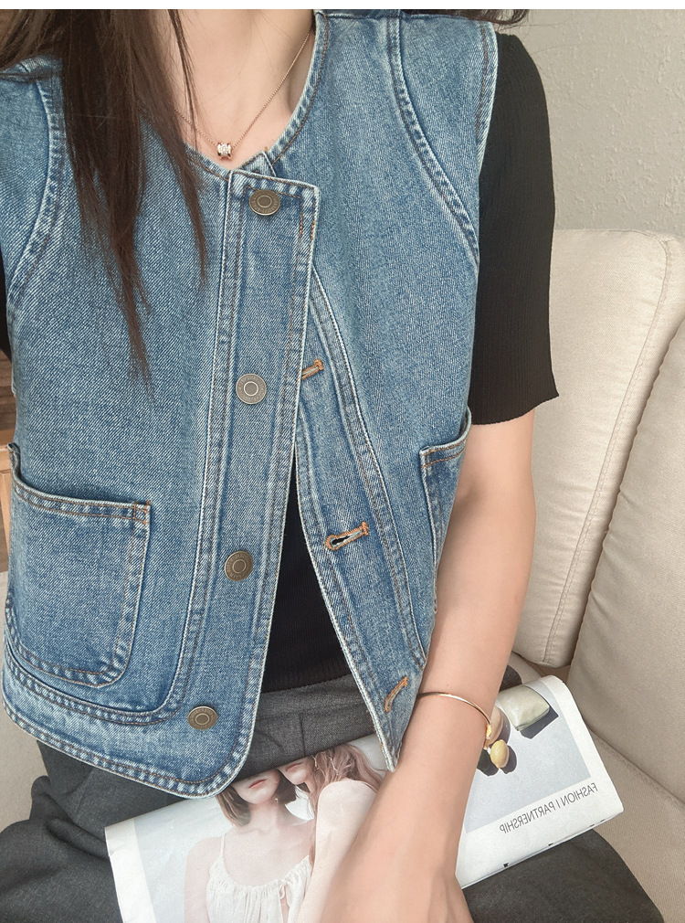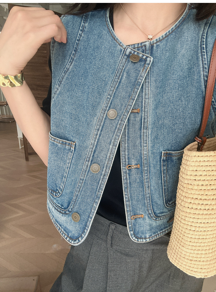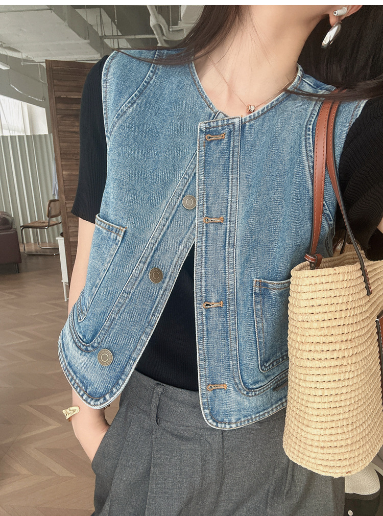 雀说时髦洋气百搭叠穿牛仔马甲女春夏宽松短款小个子无袖外套休闲上衣AL