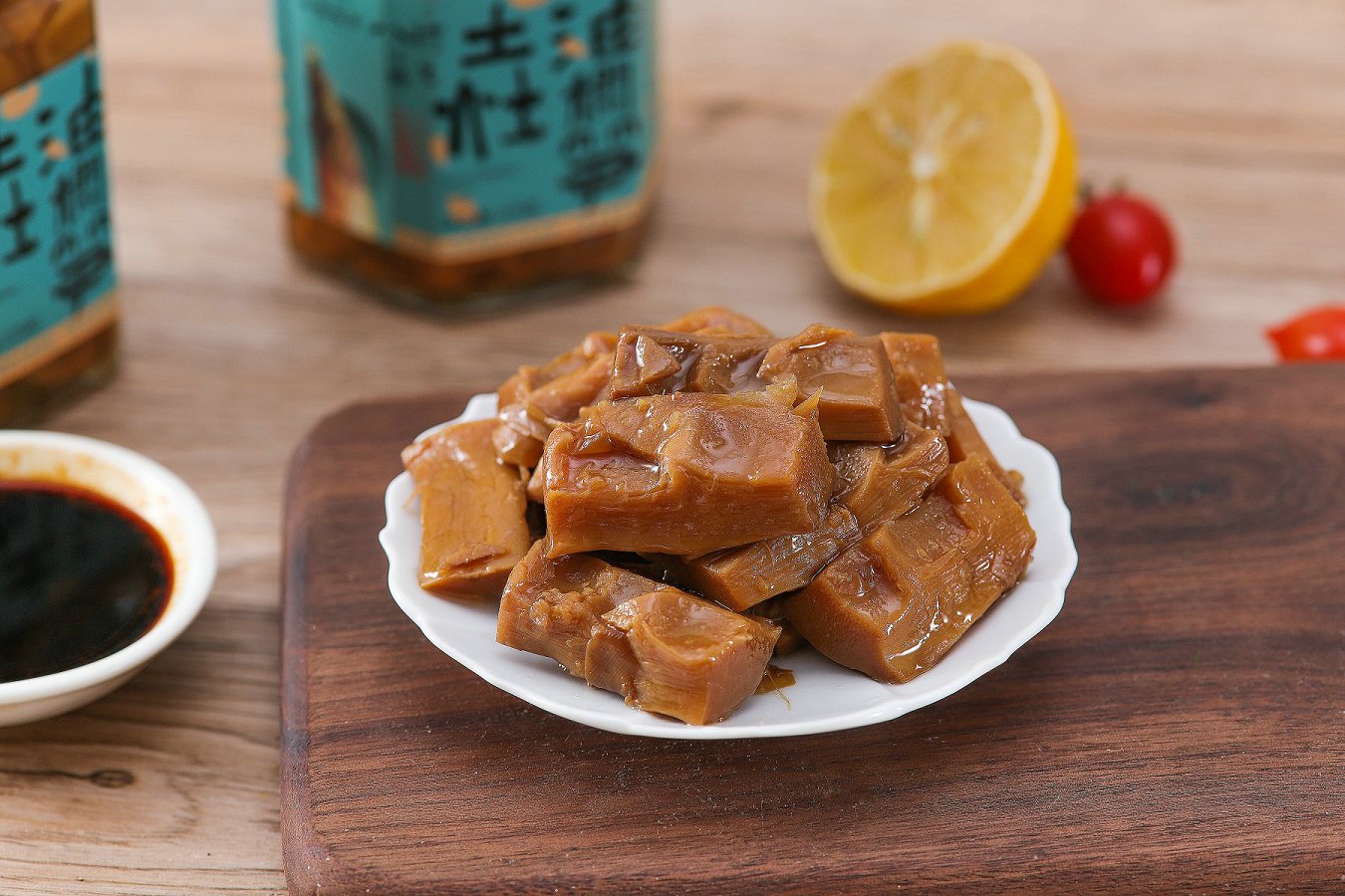 优质的油和当地老酱油,都是为油焖笋酿造的,能格外突出笋的原味和鲜味。油焖笋装瓶后会在100摄氏度下,蒸煮杀菌2小时,以求达到无菌要求。