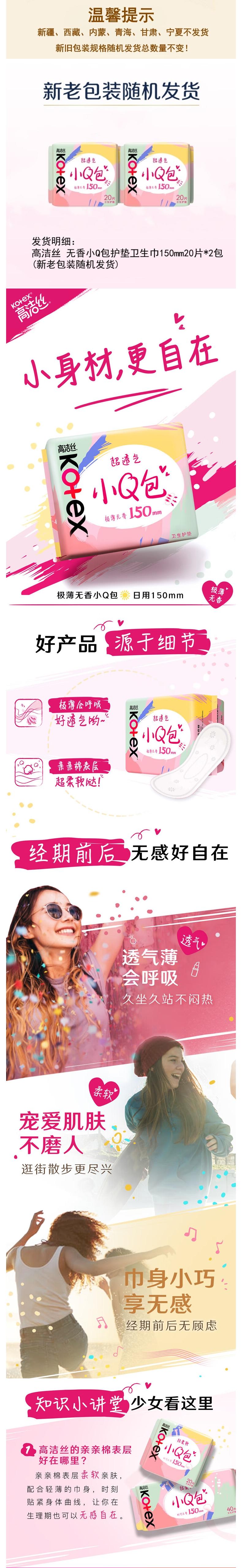 高洁丝 无香小Q包护垫卫生巾150mm20片*2包 9GS15040P