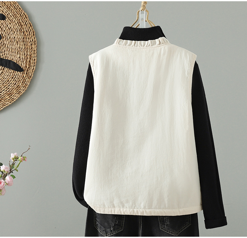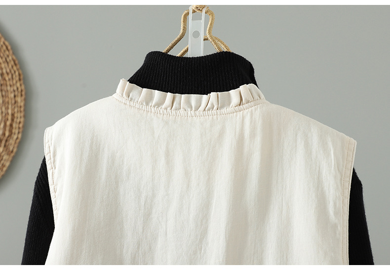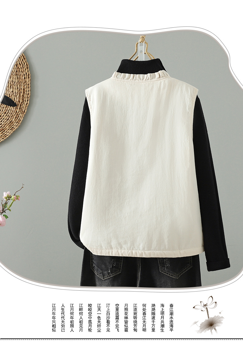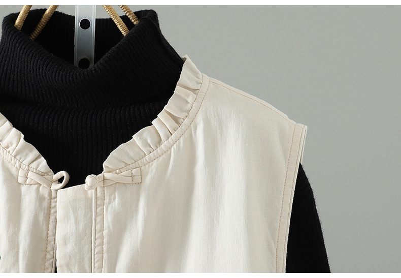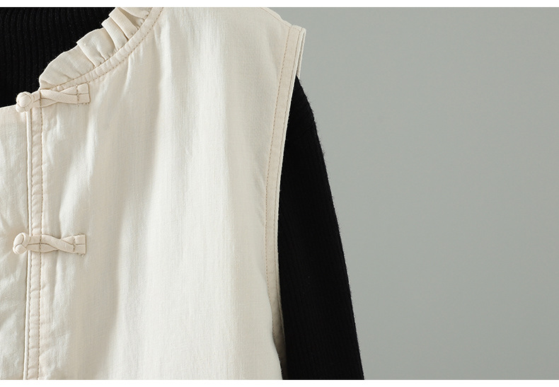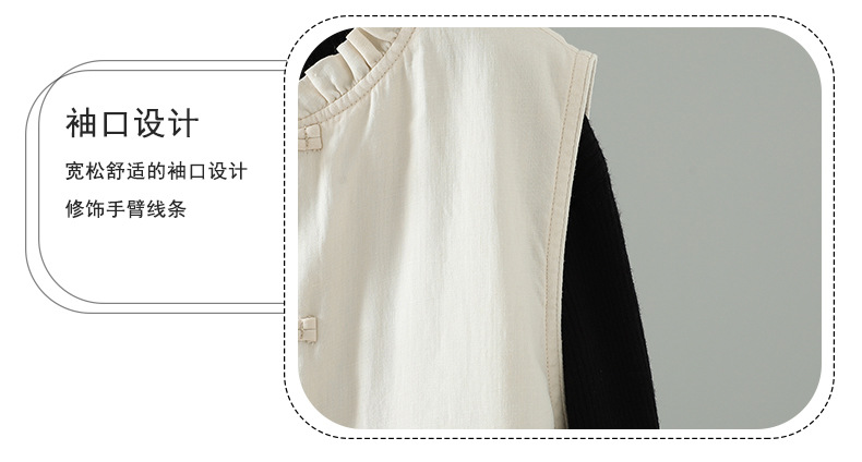 GYH 3753复古木耳边V领对襟盘扣无袖薄棉马甲