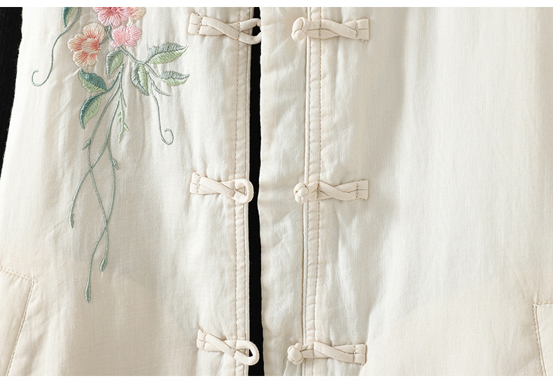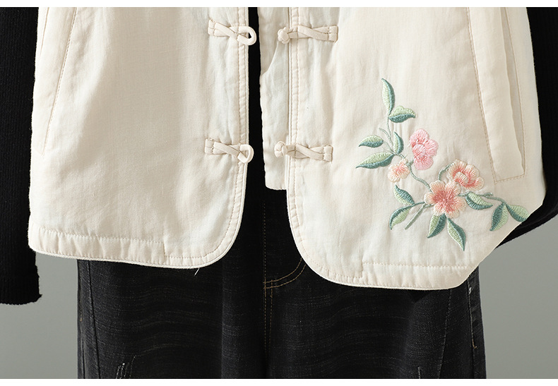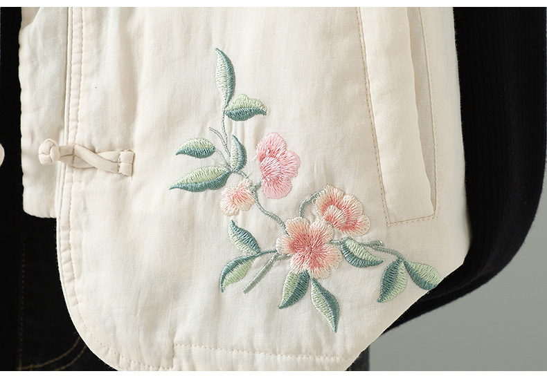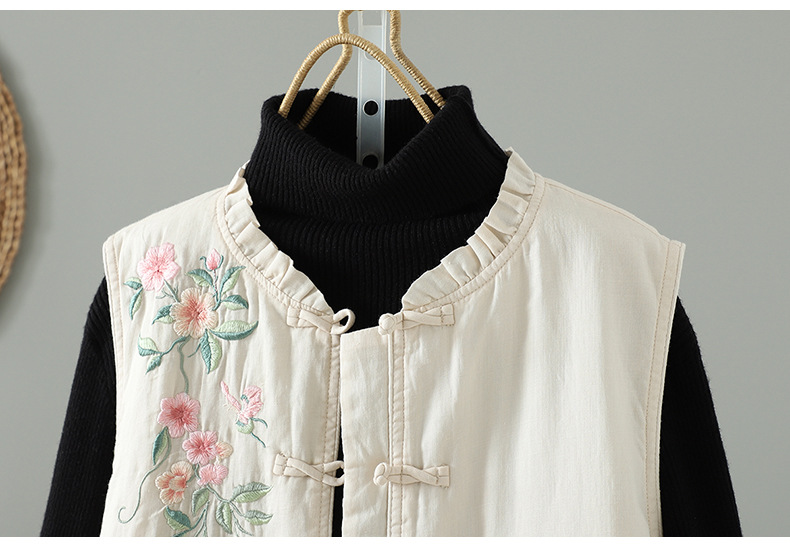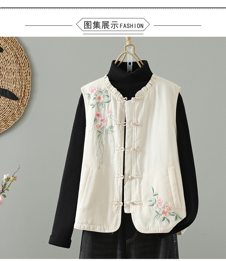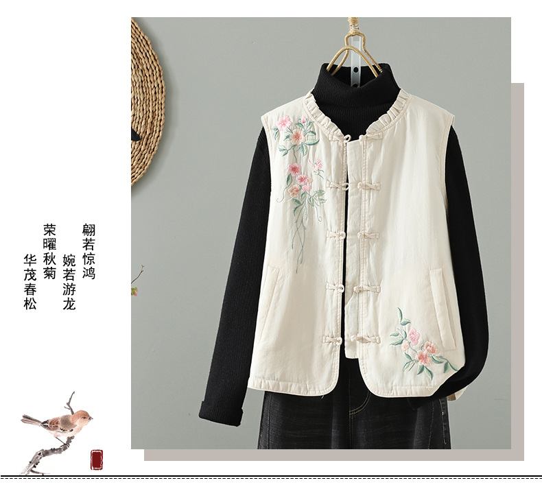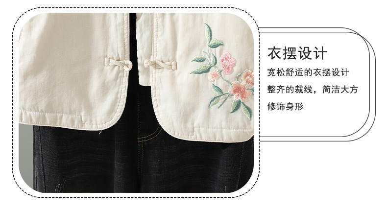 GYH 3753复古木耳边V领对襟盘扣无袖薄棉马甲