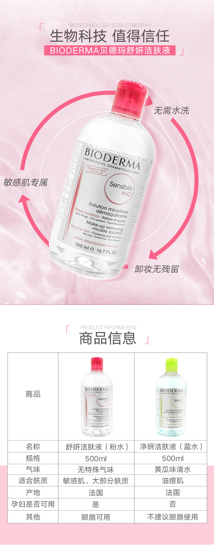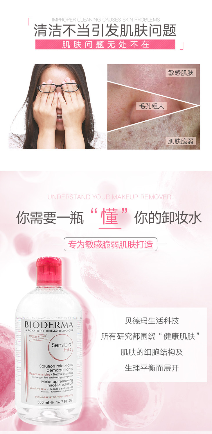 贝德玛卸妆水 粉色温和型 貝德瑪💗粉色:适合🌻,敏感、脆弱以及干性、极干性皮肤综合有效卸除淡妆及不洁物:貝德瑪卸妝水有效卸除脸部淡妆及不洁物,👸🏼独有Micelle 洁肤配方,含有水溶及油溶分子,可溶解面上的污垢🎏🎏 ,提升皮肤的舒适度,改善紧绷不适感并使肌肤柔嫩。🚿🚿温和🍃🍃卸妆,无刺激:味道清香,🌾🌾不刺鼻,清爽并保湿,减少皮脂制造,消除发炎状况。天然青瓜🍎🍎植物精华,可收敛毛孔,使肌肤感到清新及光滑,特别针对敏感肌肤设计。🍀🍀舒缓、保湿、柔软肌肤,减轻灼热及红肿。🌻🌻