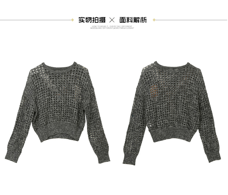 镂空钩花圆领针织衫女 宽松显瘦长袖上衣