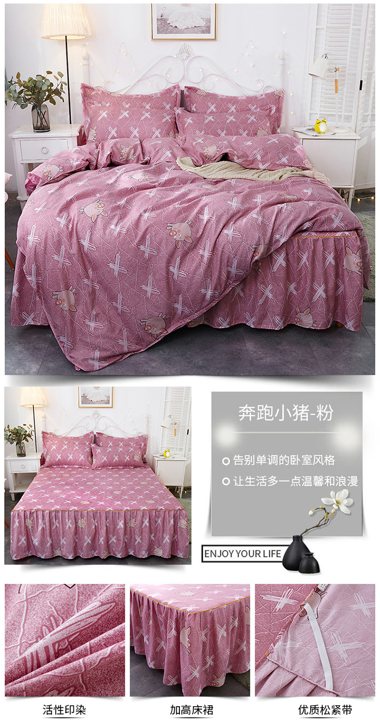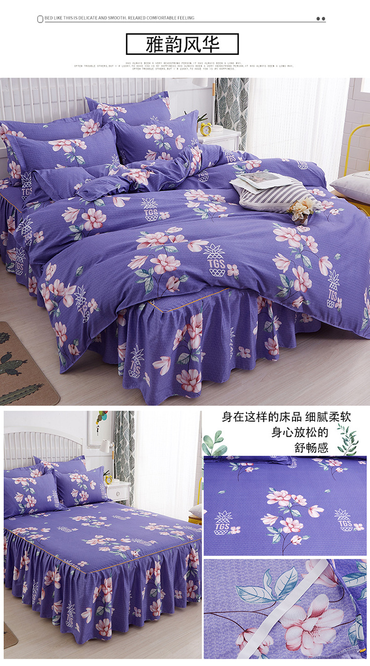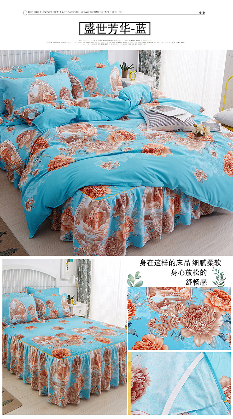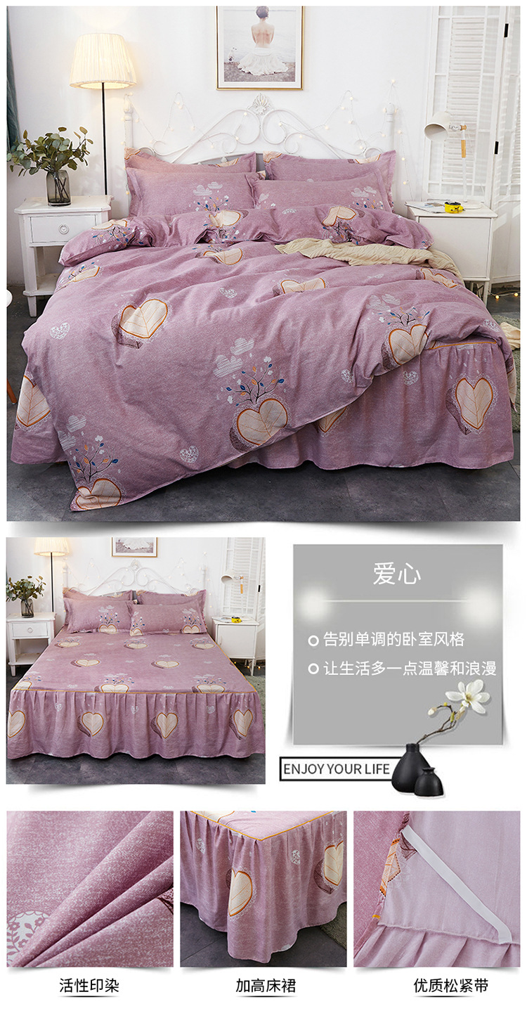 YC-004新款磨毛床裙加厚床罩韩版单双人被套四件套