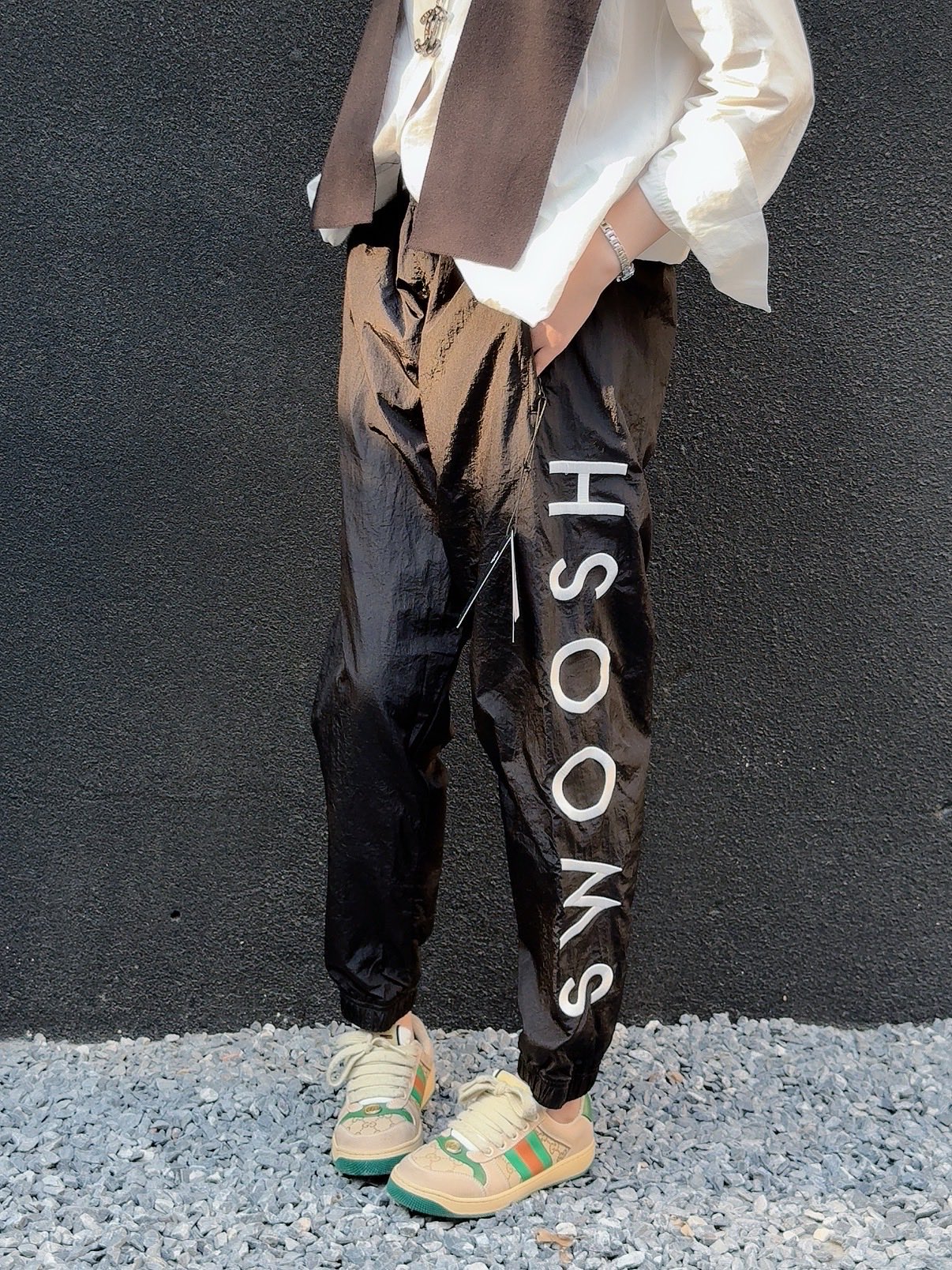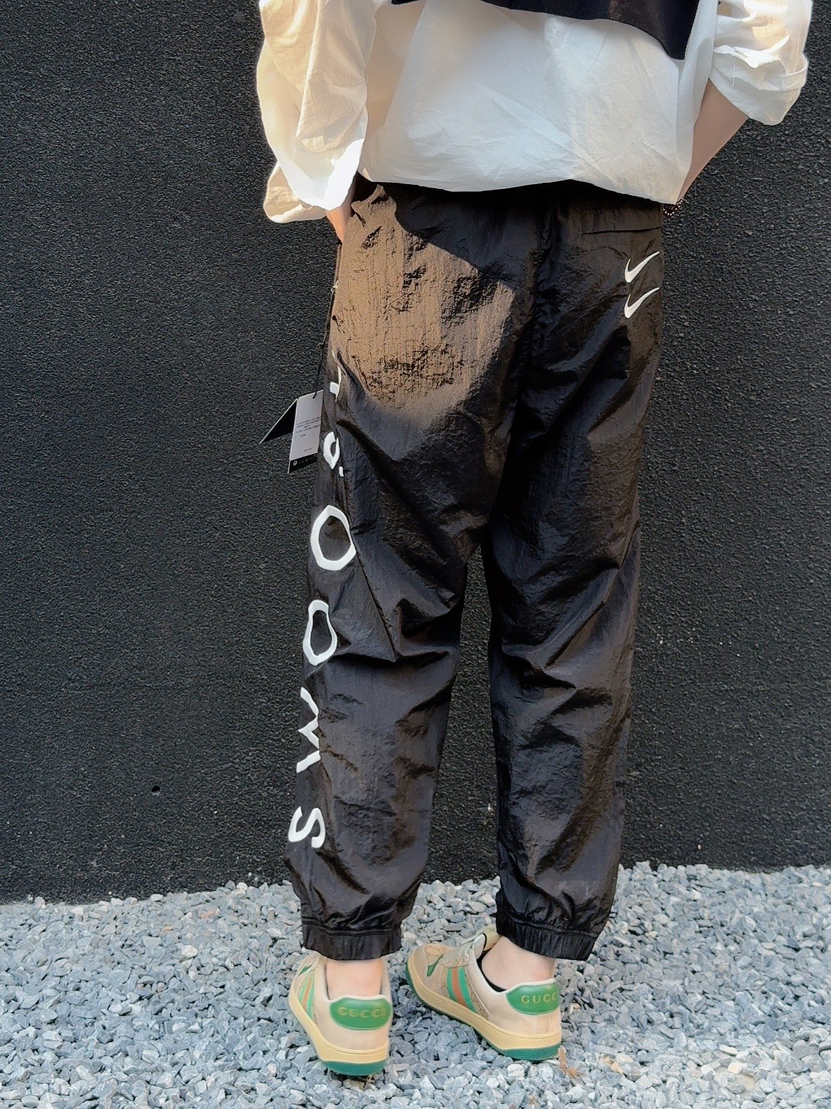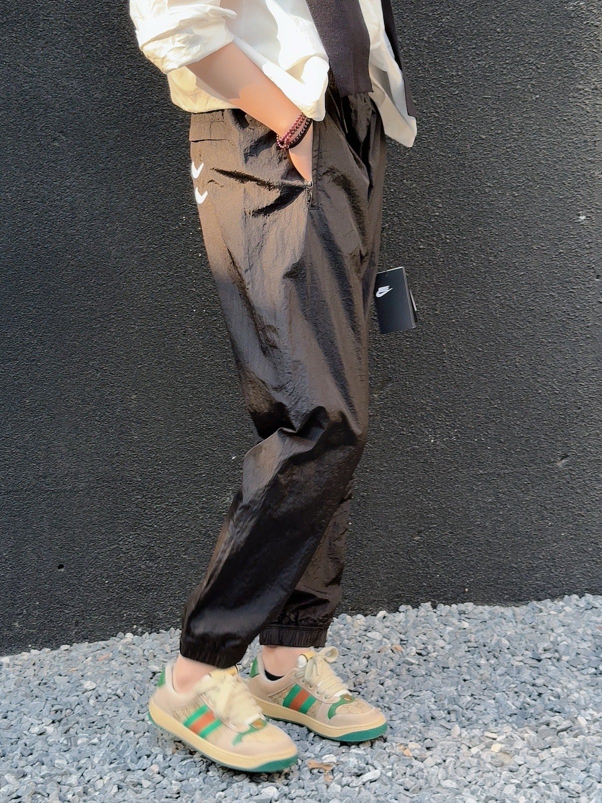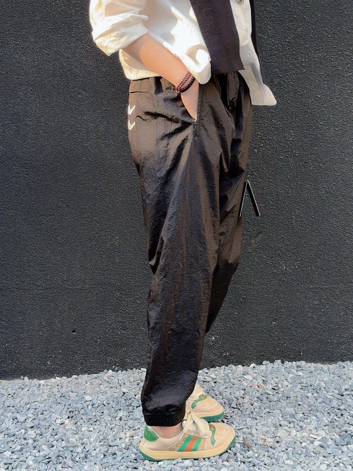 采用高质量的梭织面料,具有出色的透气性和舒适度。它能让你在运动时保持干爽,同时提供了足够的弹性,使你的活动更加自如。男女都适合,一年四季都可以穿的一款裤子。配色黑白时尚简单!logo部分刺绣做工很精细,裤脚也十分合适,不会勒脚脖子!面料舒服,防水,污渍也可以很好的祛除!透气性也非常不错,裤子也很有弹性!细节上面满分,无线头,无缝纫偏差!值得入手!!