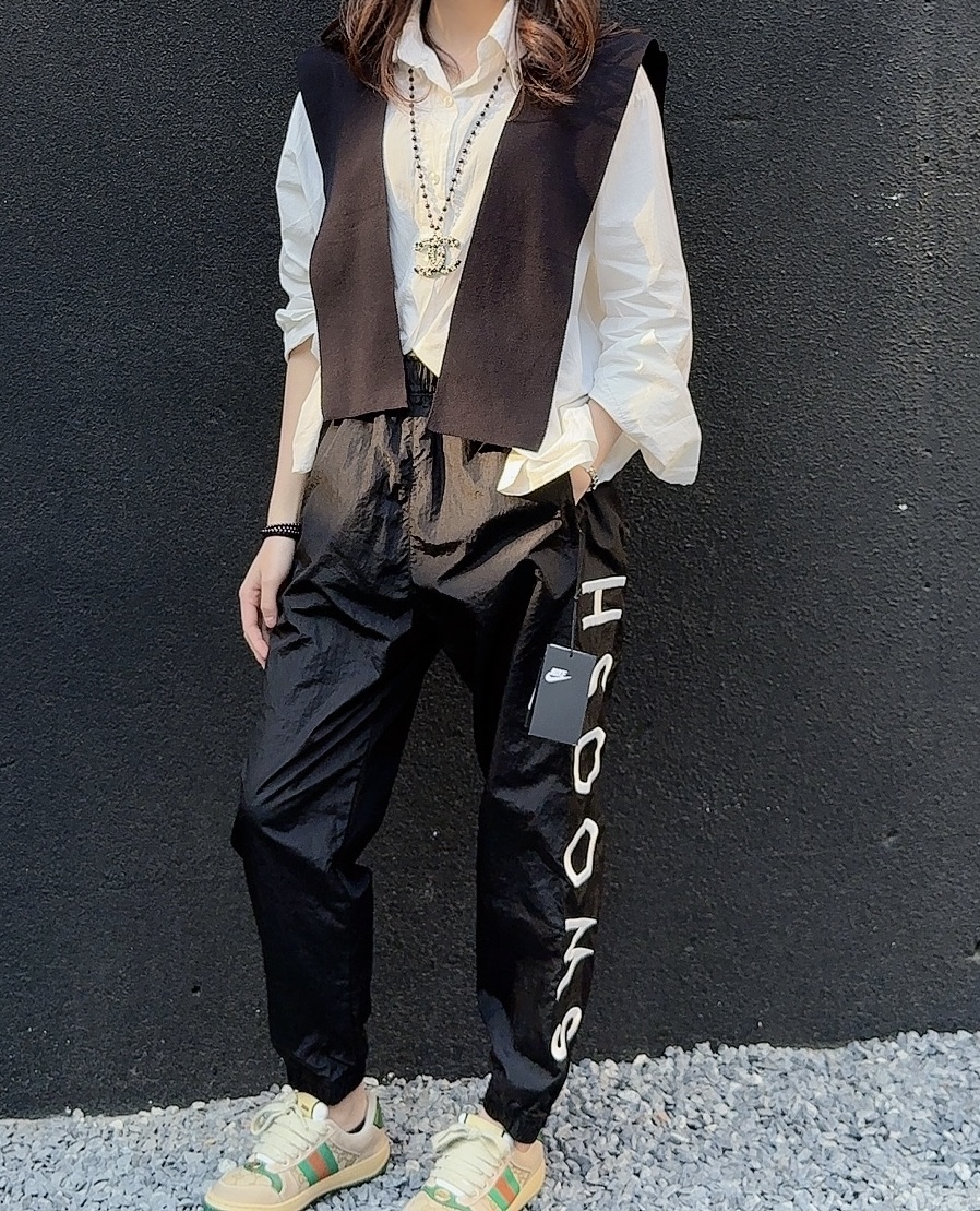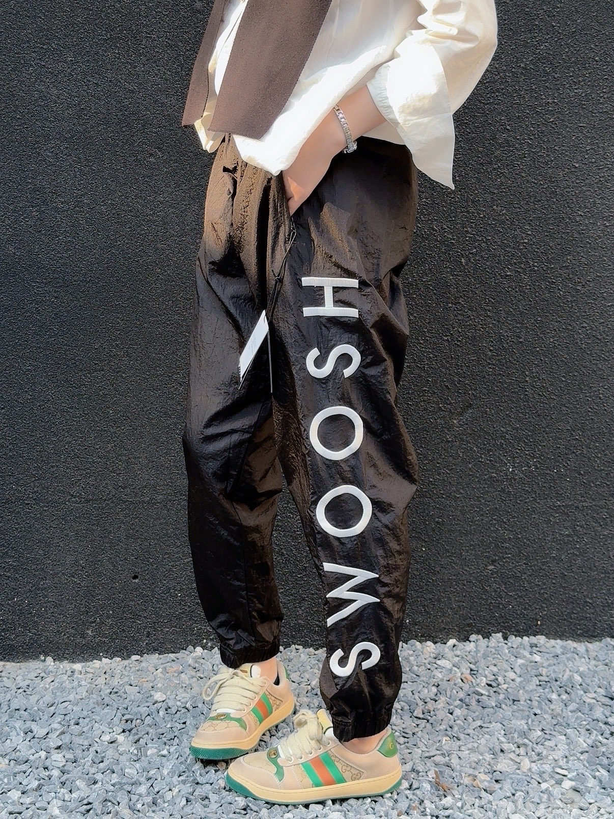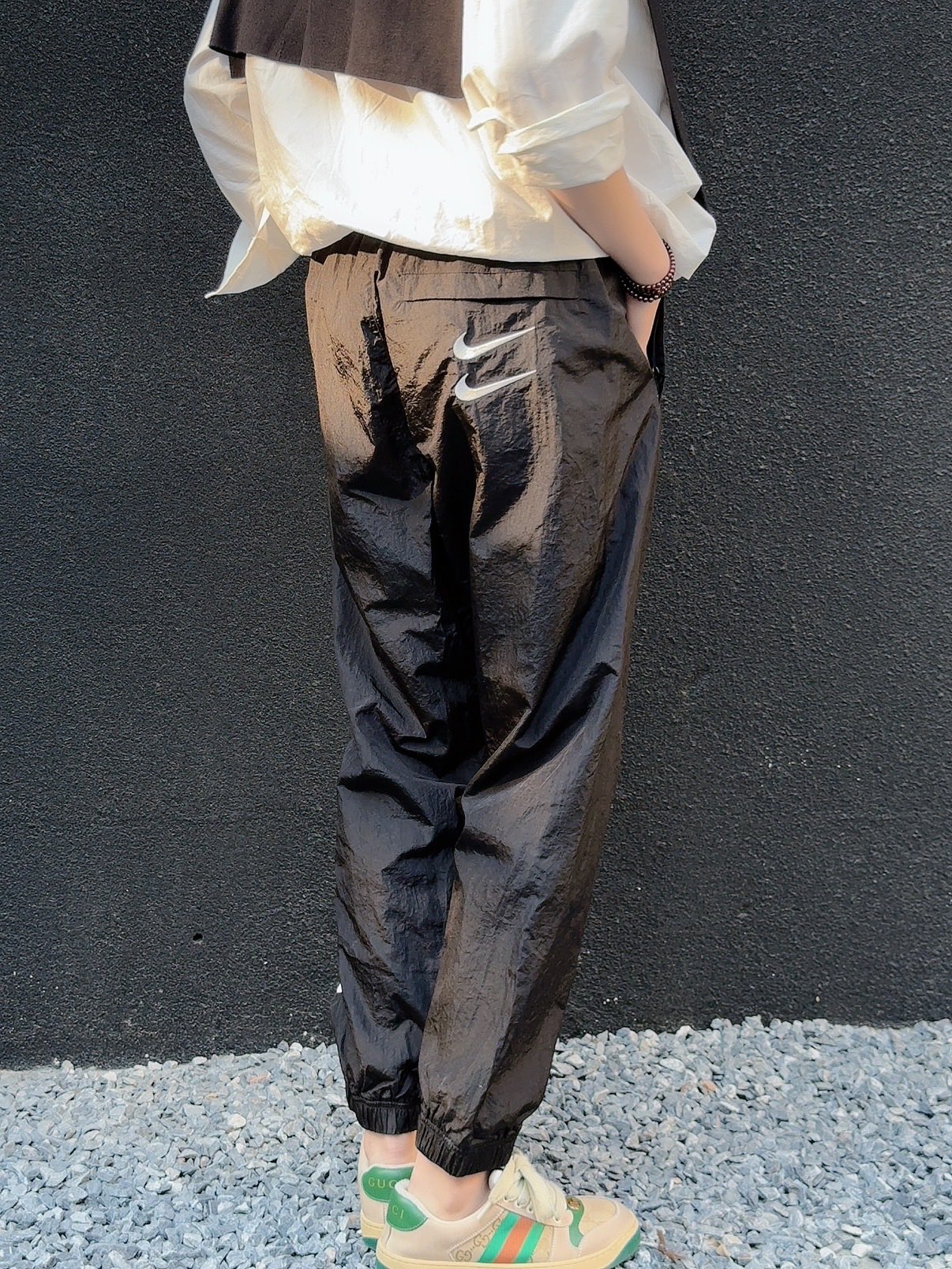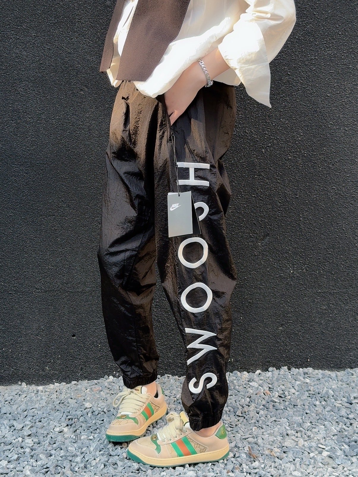 采用高质量的梭织面料,具有出色的透气性和舒适度。它能让你在运动时保持干爽,同时提供了足够的弹性,使你的活动更加自如。男女都适合,一年四季都可以穿的一款裤子。配色黑白时尚简单!logo部分刺绣做工很精细,裤脚也十分合适,不会勒脚脖子!面料舒服,防水,污渍也可以很好的祛除!透气性也非常不错,裤子也很有弹性!细节上面满分,无线头,无缝纫偏差!值得入手!!