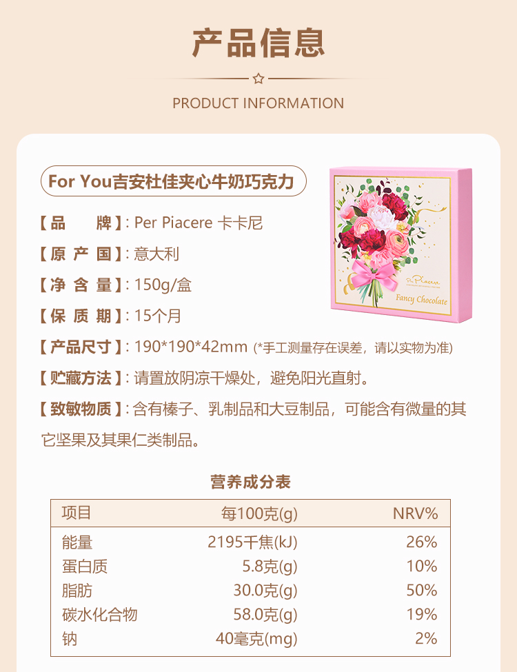 意大利卡卡尼For You吉安杜佳夹心牛奶巧克力制品礼盒{粉色}150