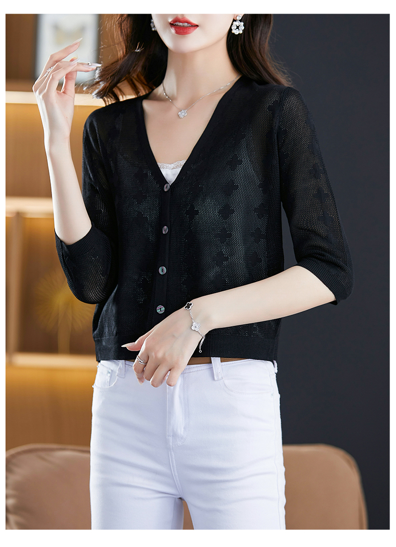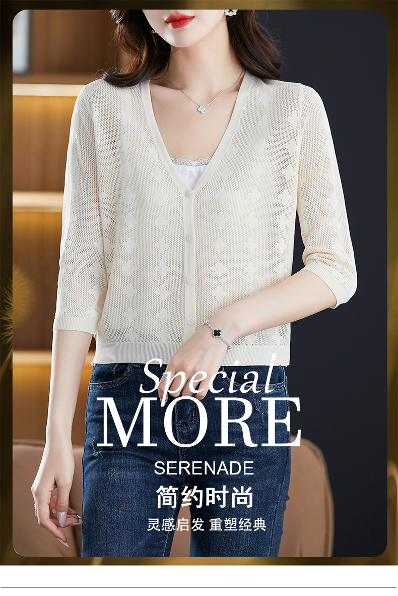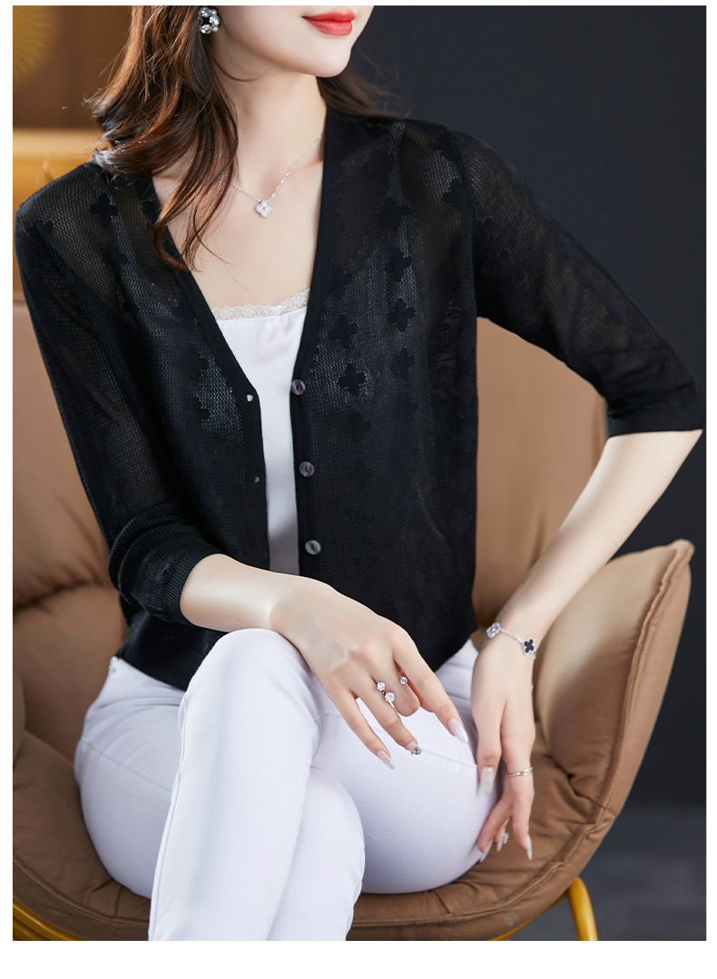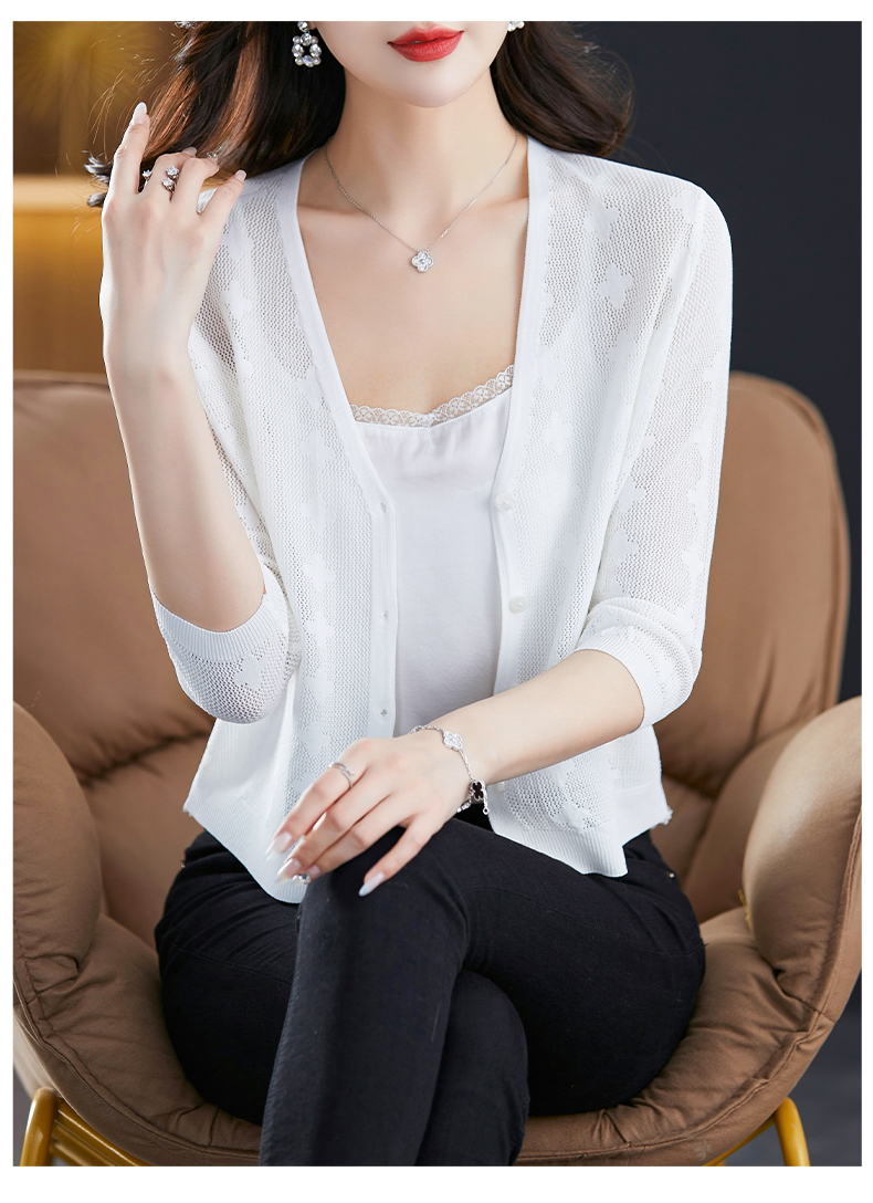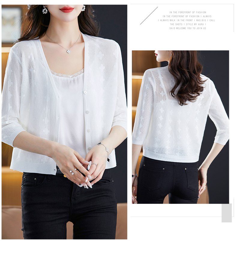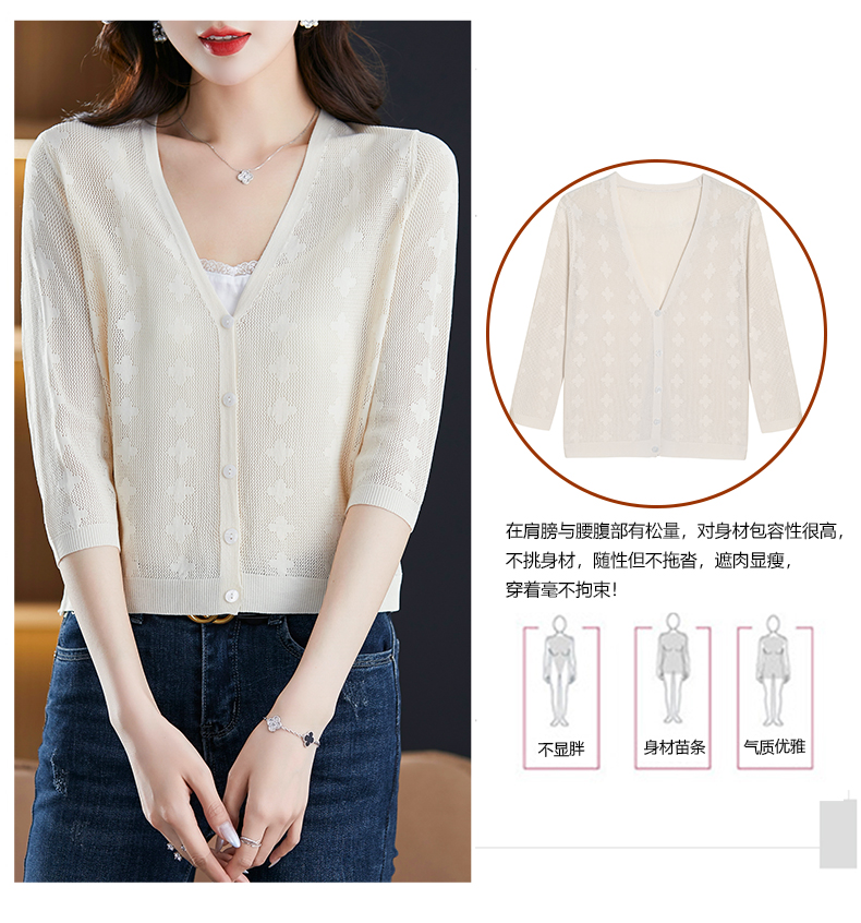 妈妈夏装镂空七分袖冰丝针织衫衣外套CC-3193