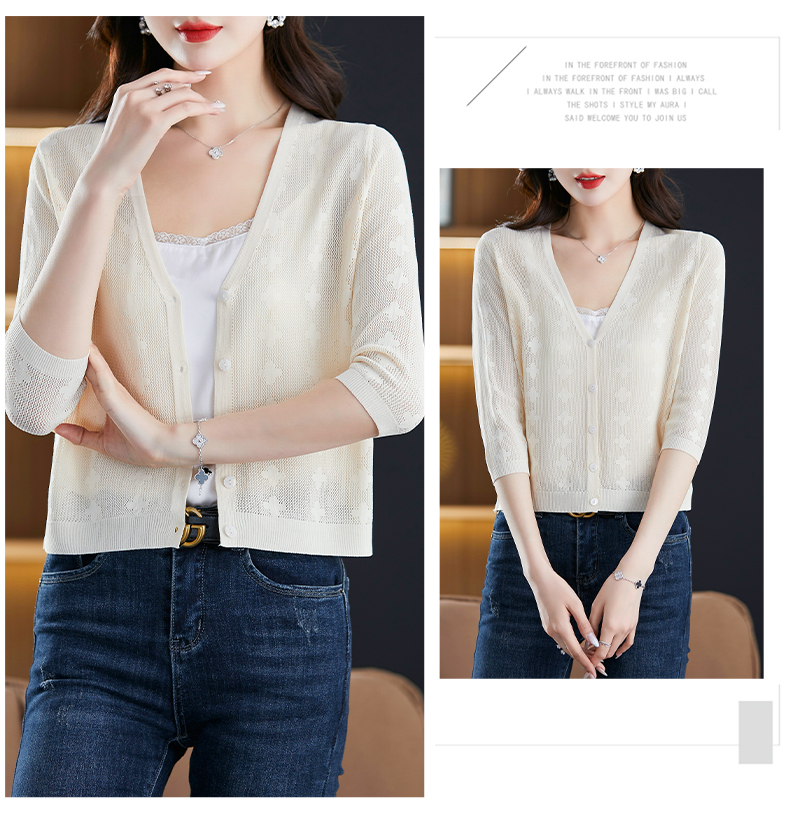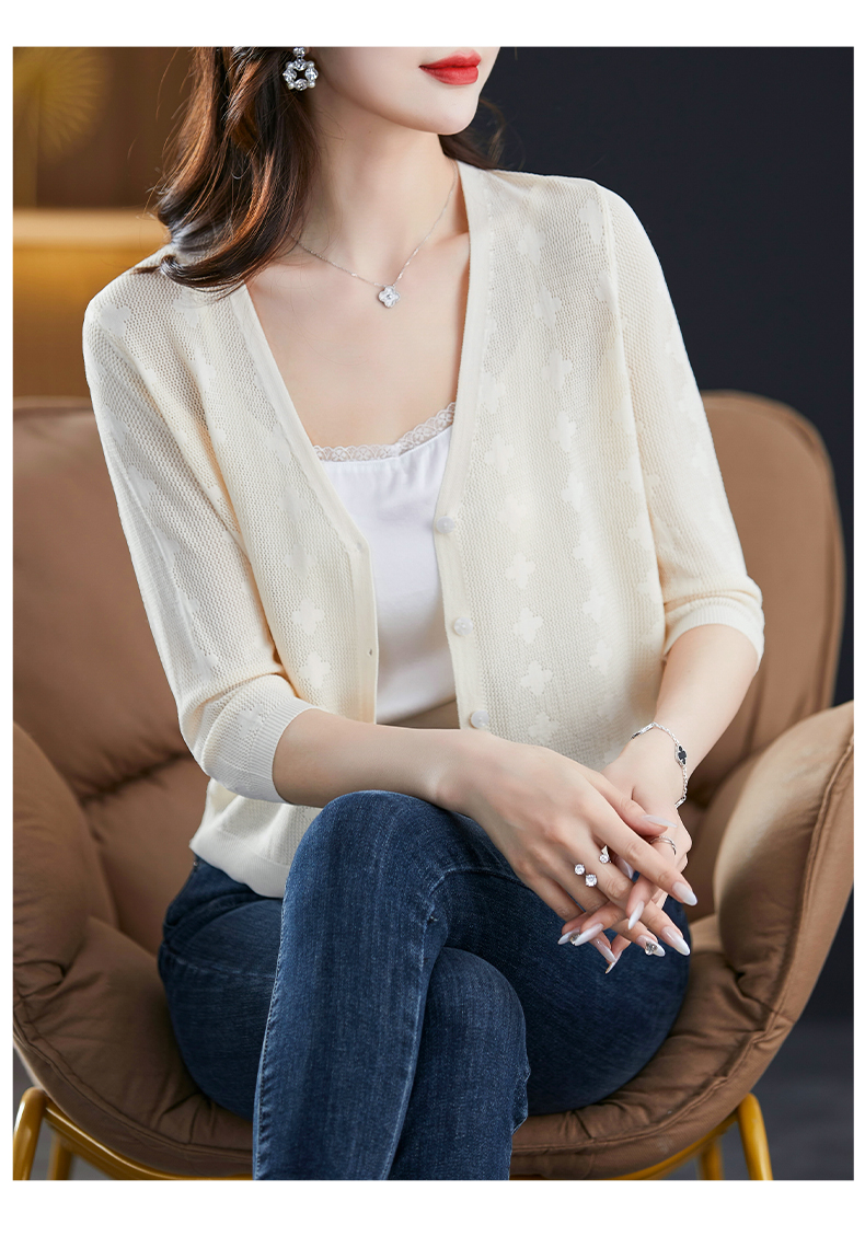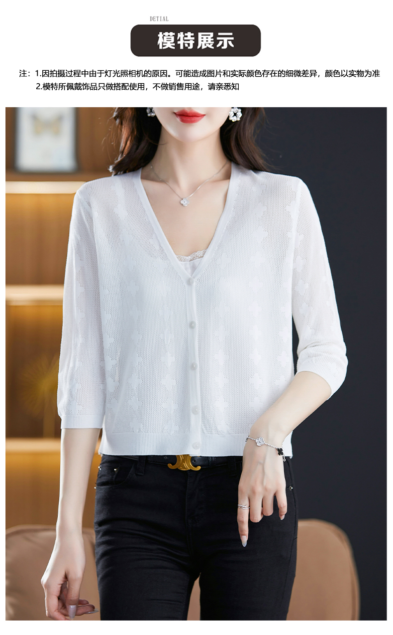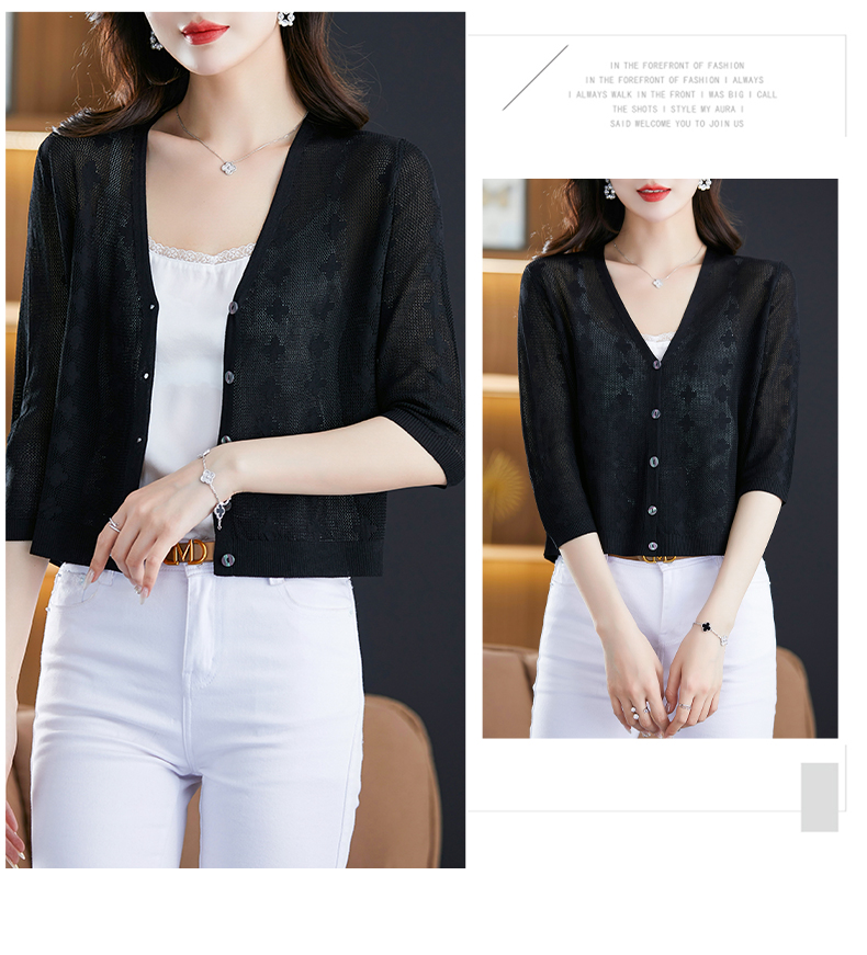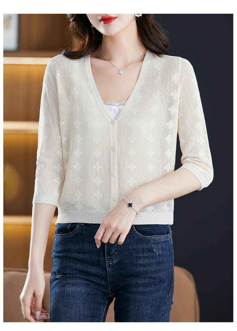 妈妈夏装镂空七分袖冰丝针织衫衣外套CC-3193