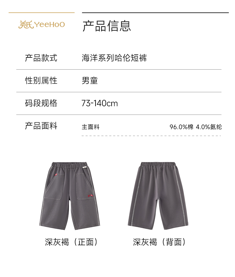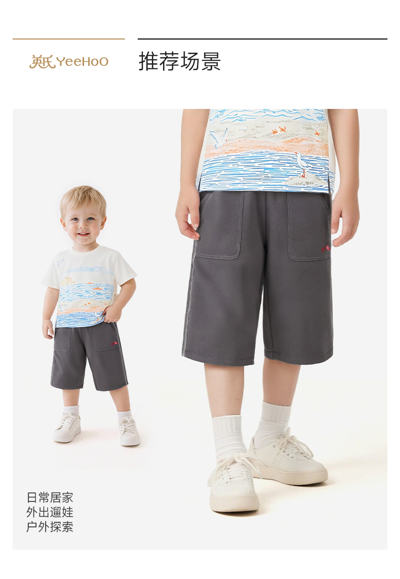 【商场同款】英氏男童中裤夏新款休闲五分裤透气薄款男宝裤
