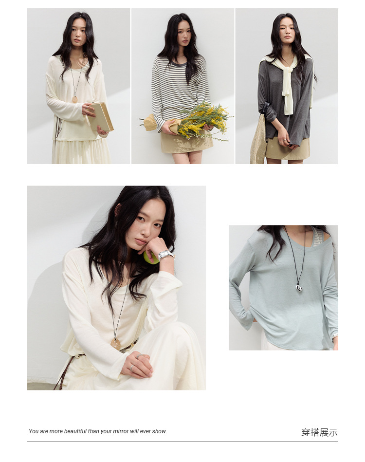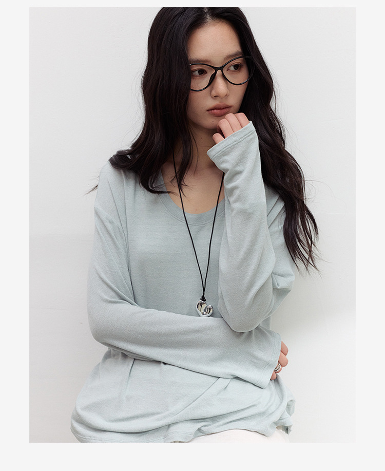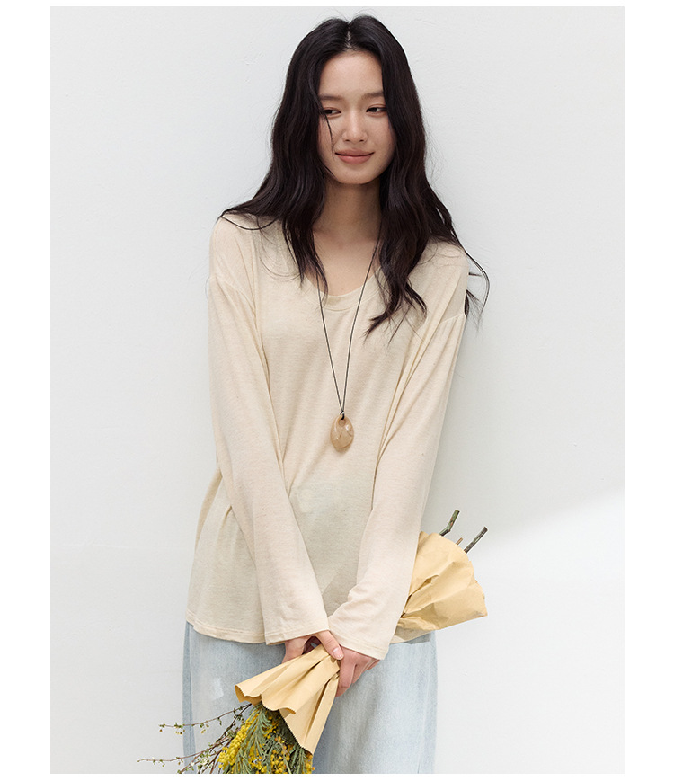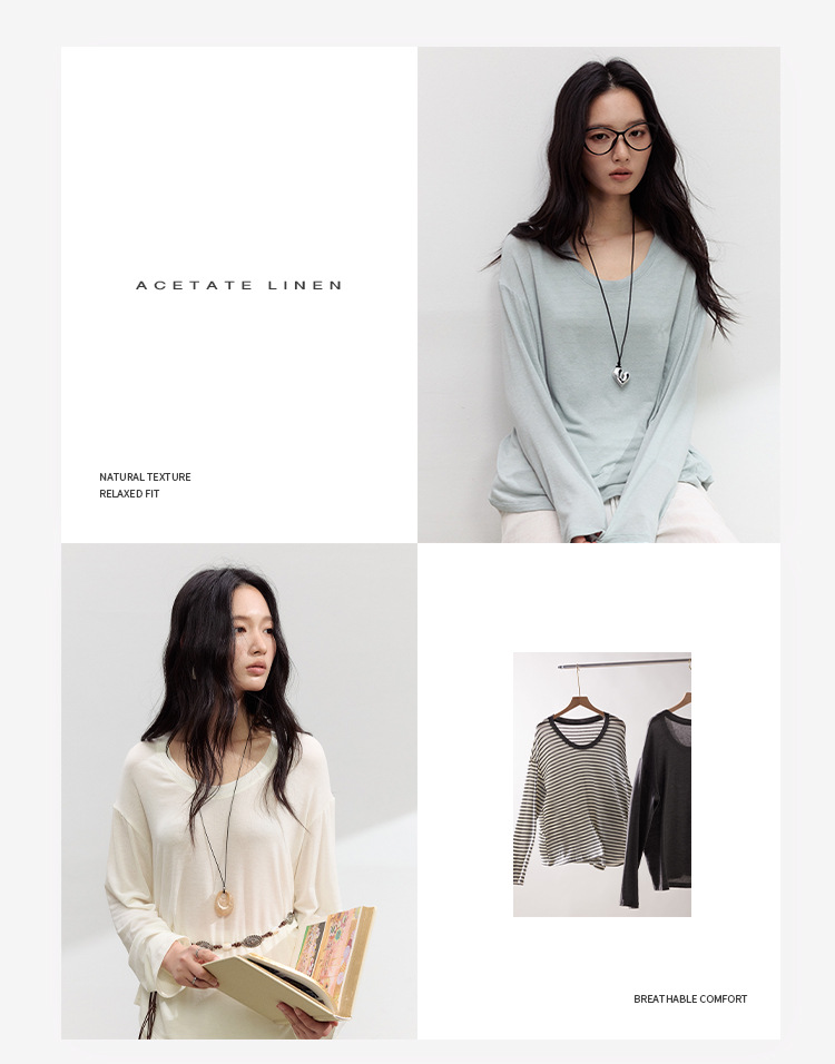 【2026夏季新品】醋酸亚麻・U领罩衫 天丝莱赛尔春夏宽松打底衫基础款百搭休闲上衣
