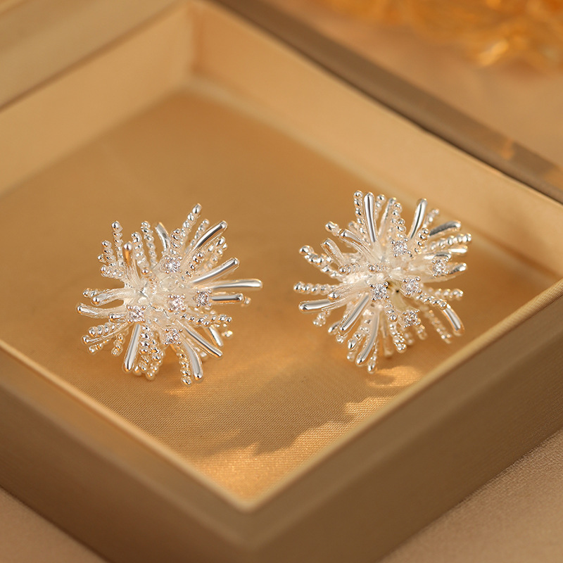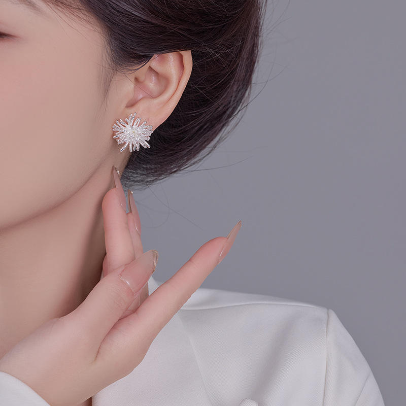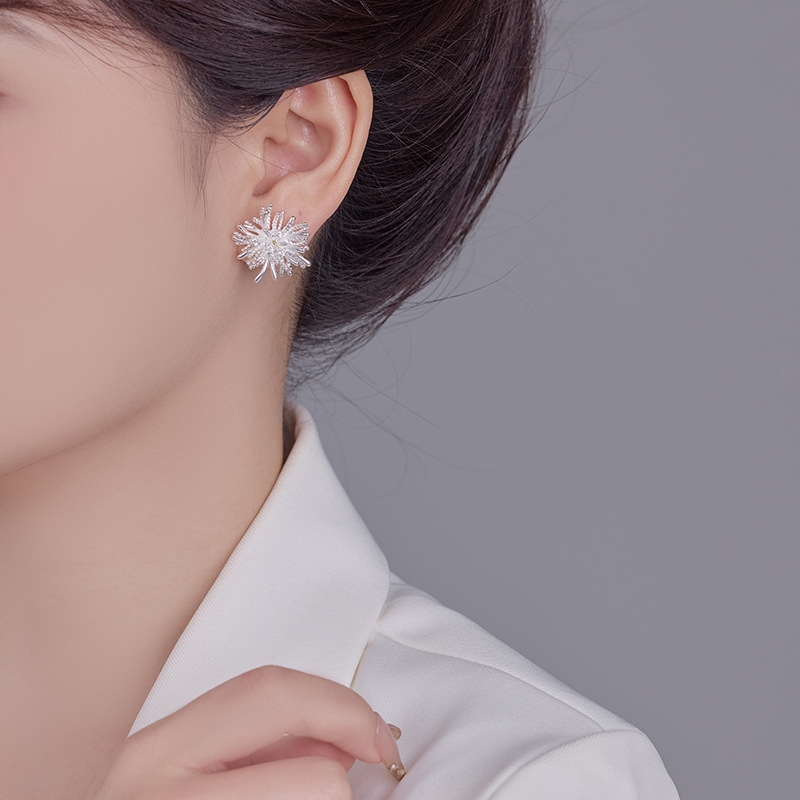 雀说轻奢高级感银色蒲公英耳钉LY-0944