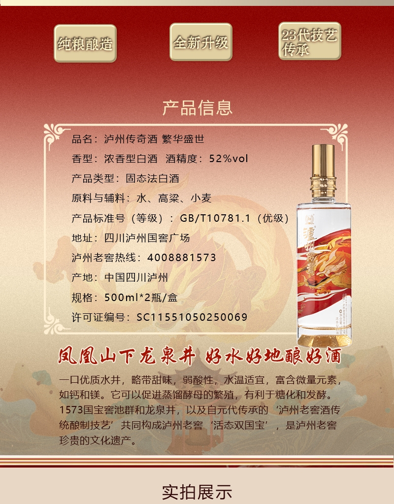 【优质浓香刚需款 酒味浓香 酒质甘冽】泸州老窖泸州传奇/恒运祥福泸州传奇52度浓香型500ML*2瓶