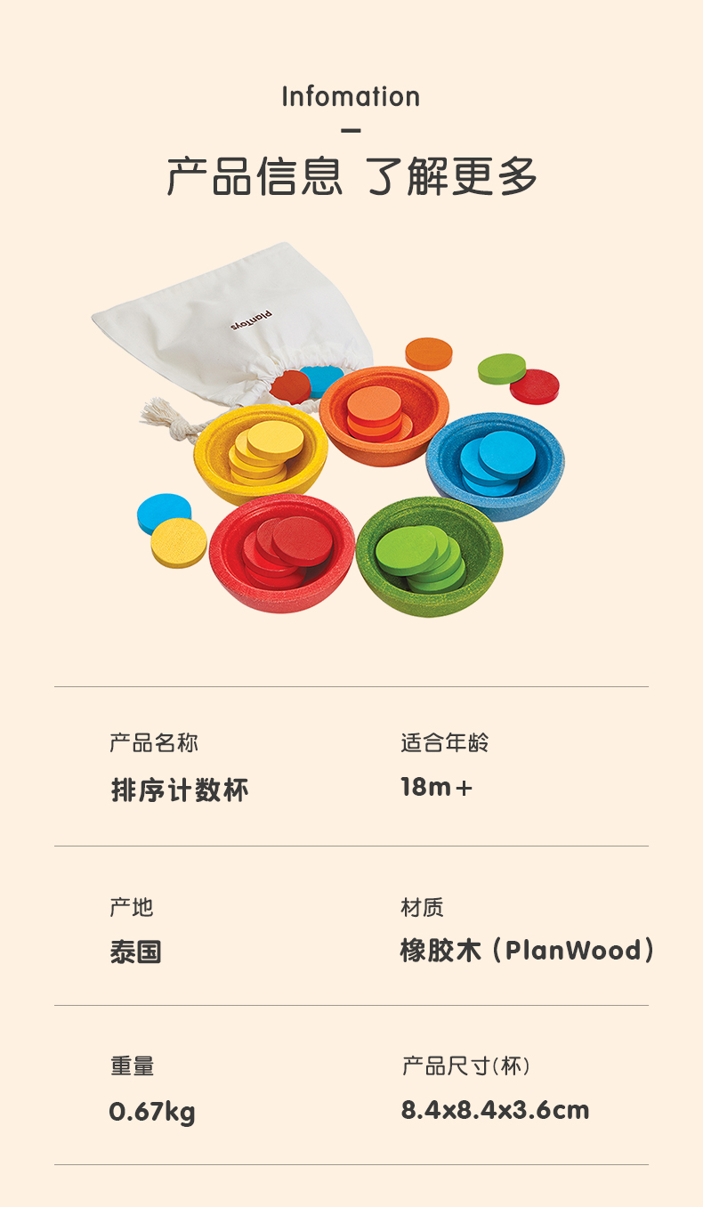 【PlanToys】颜色分类排序 数学计数游戏宝宝早教玩具 5360排序计数杯