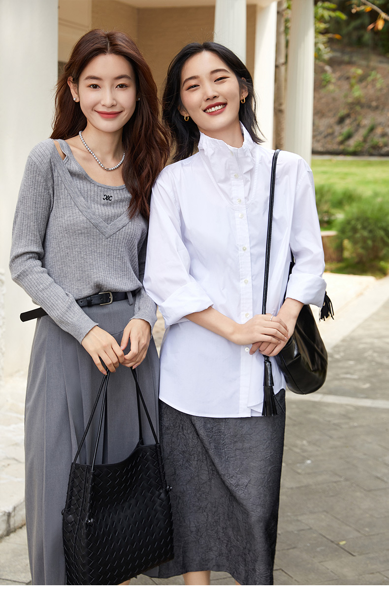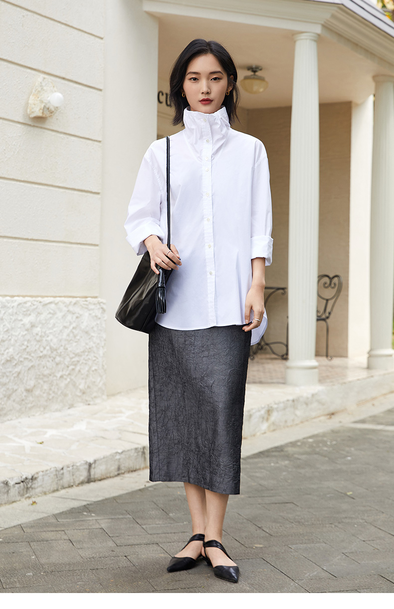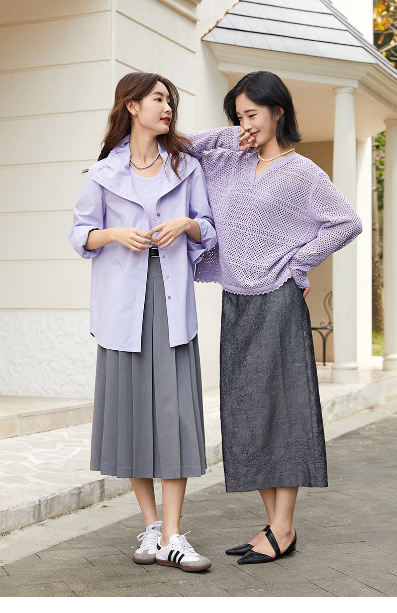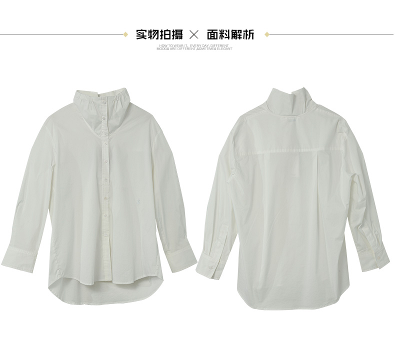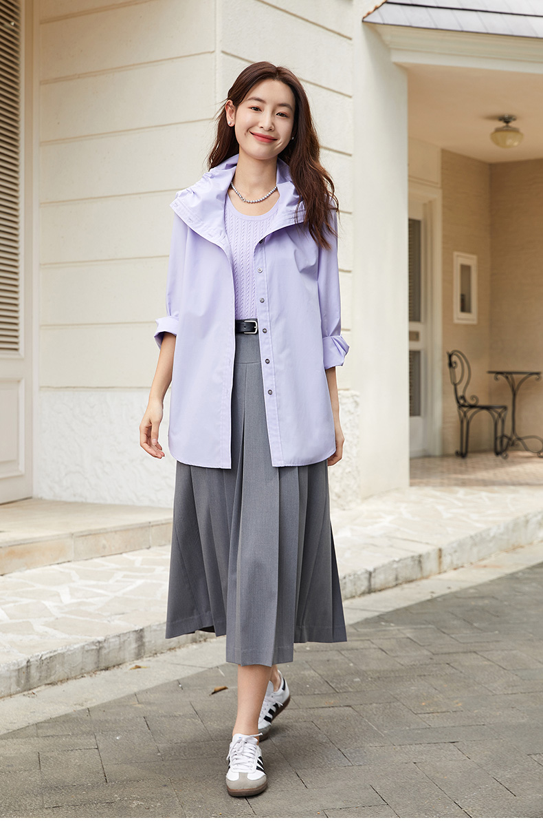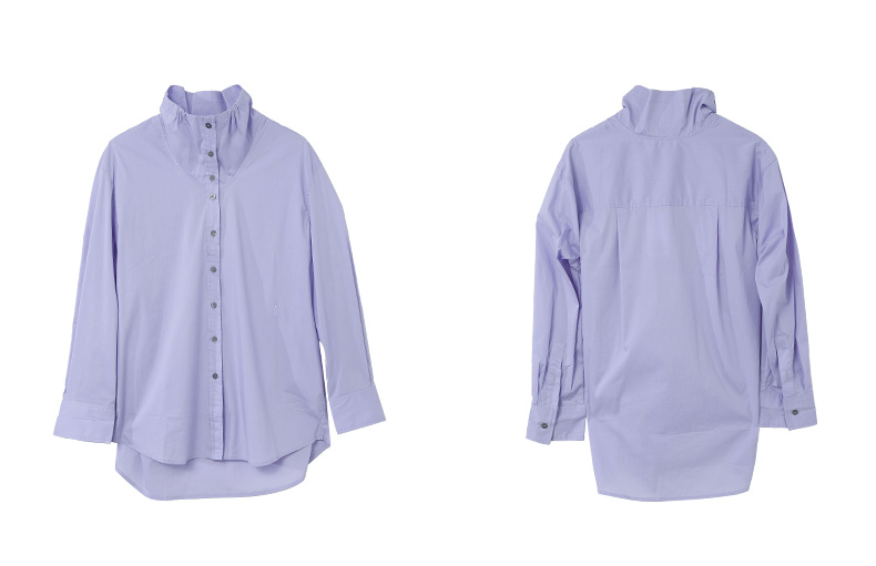 浪漫氛围 浅紫色木耳边立领衬衫 宽松长袖 清新小衫