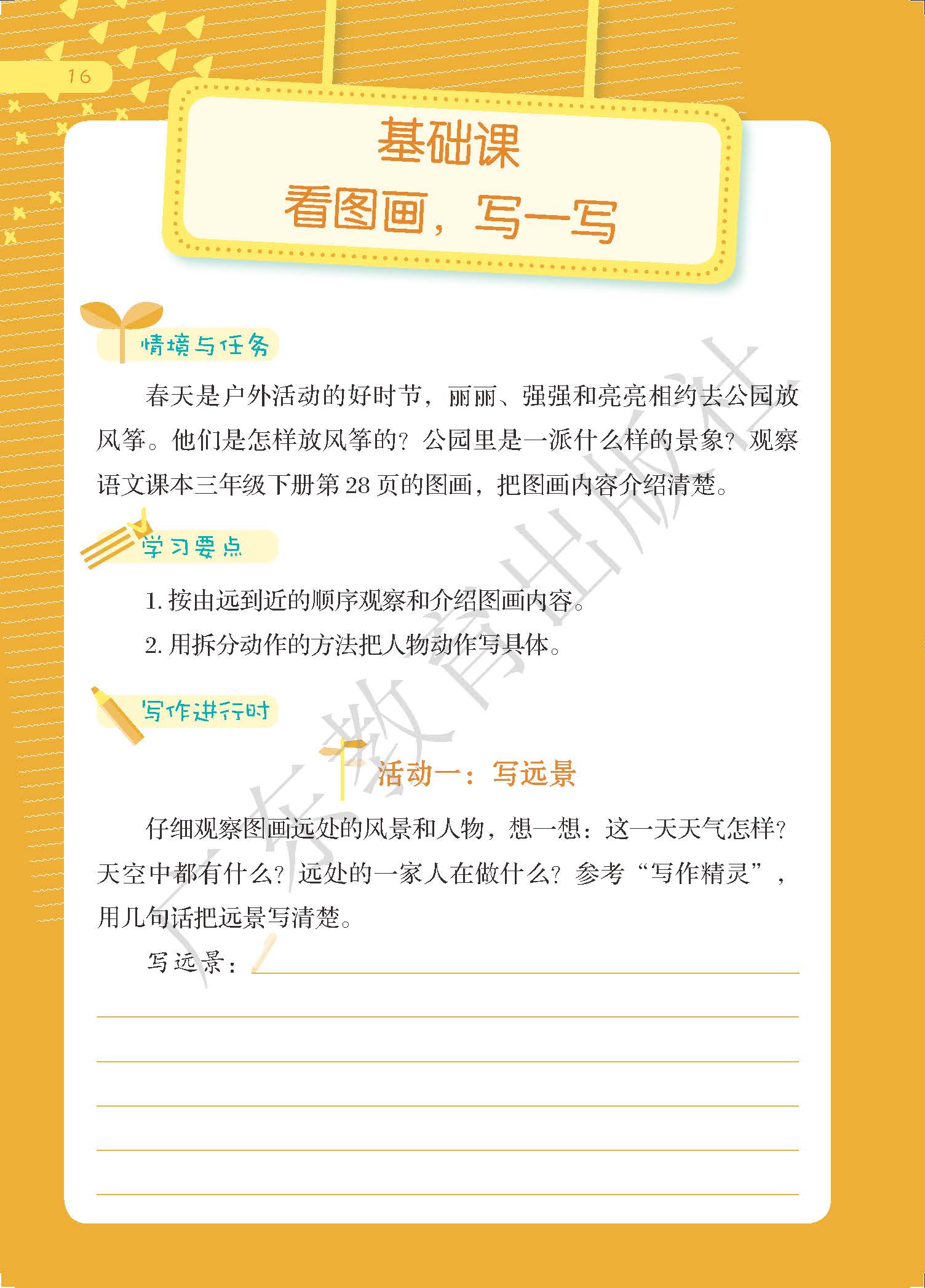4.配套齐全,利教便学:配套教学微课,一线名师主讲,手把手教你学写作;配套PPT课件,方便教师和家长选用。