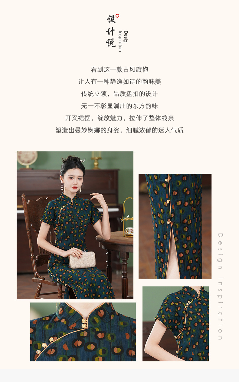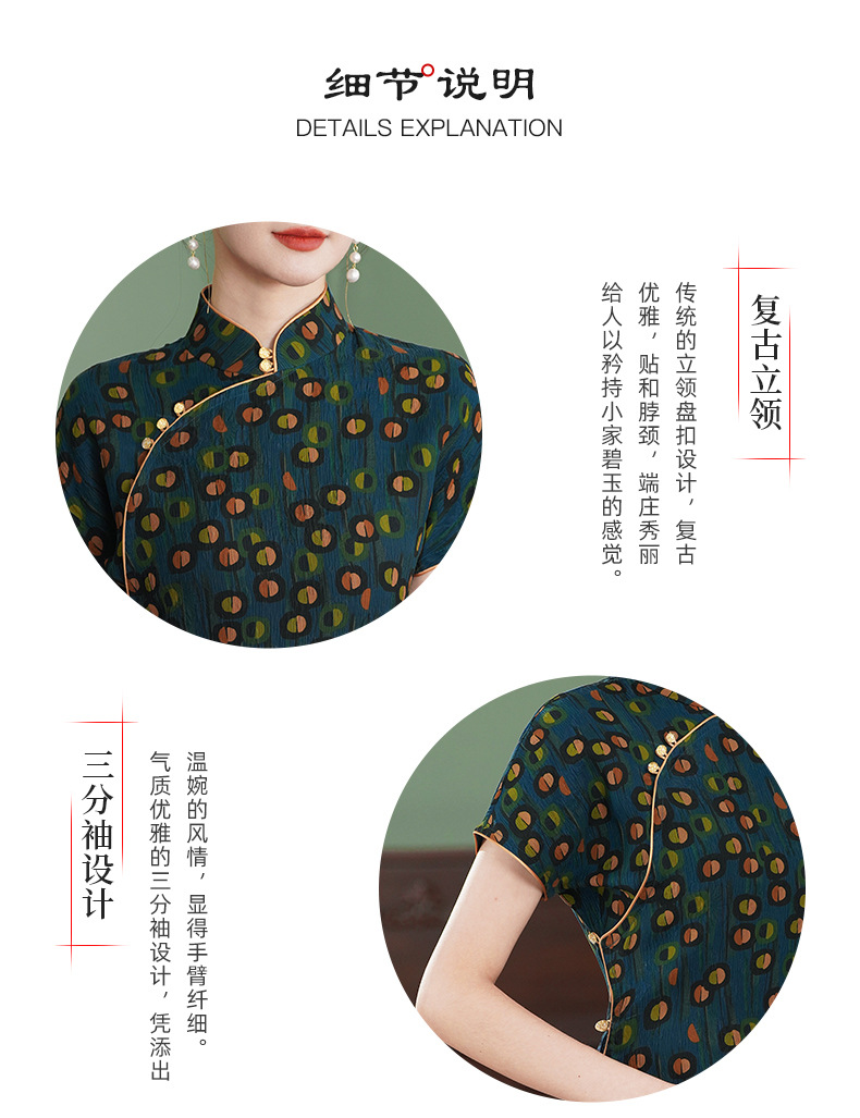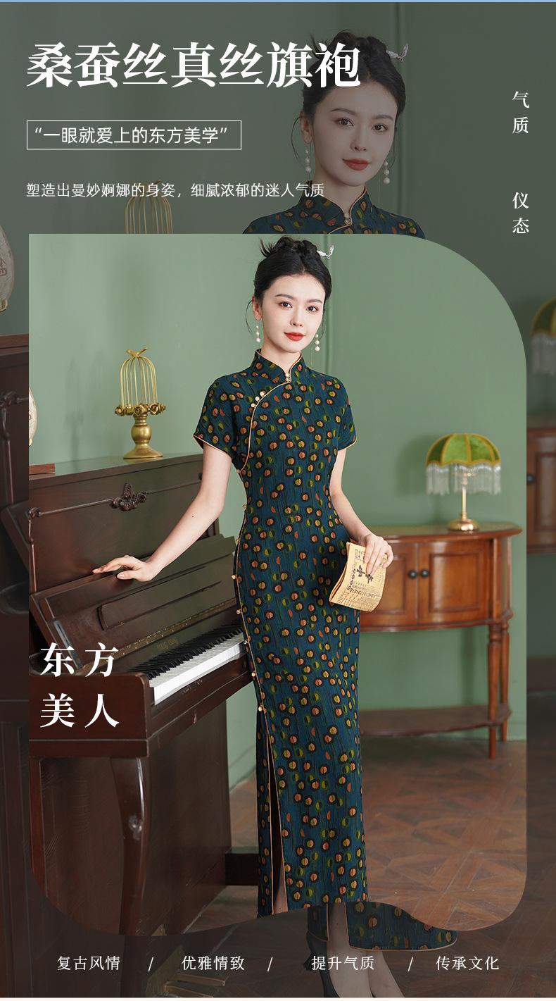 TZRY-新款重磅香云纱真丝桑蚕丝复古旗袍斜襟真襟旗袍裙日常优雅旗袍