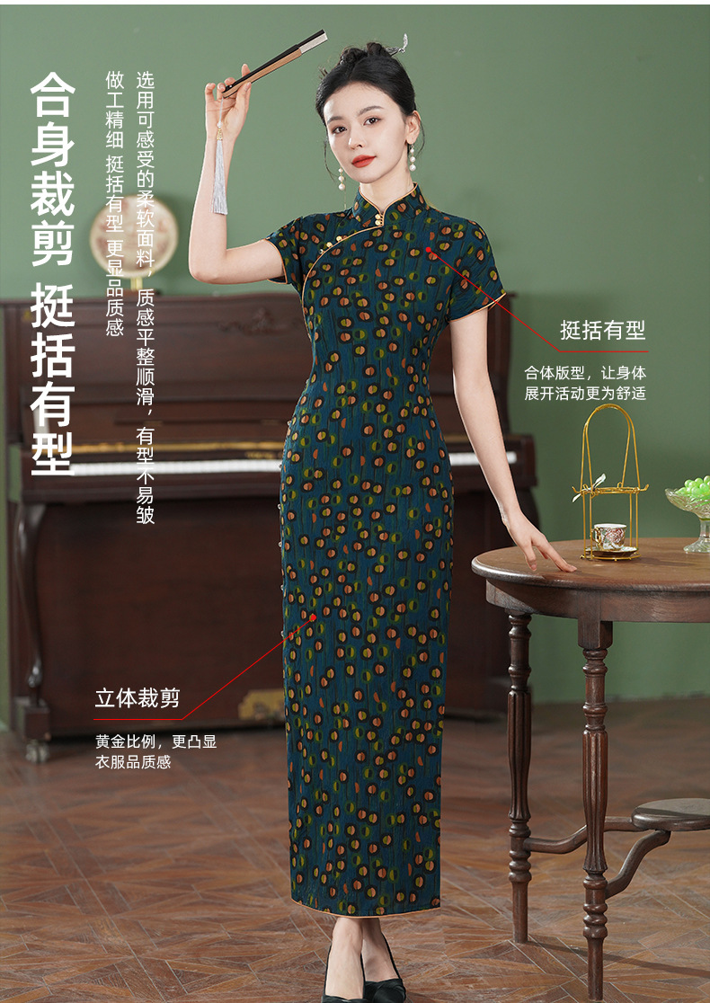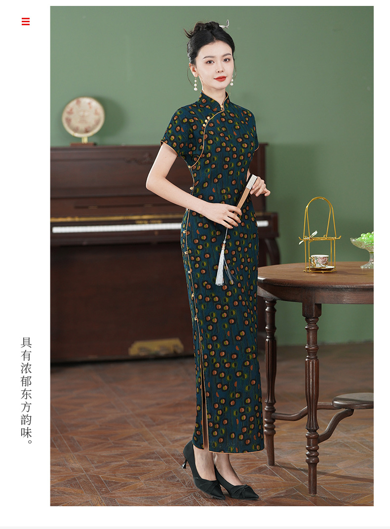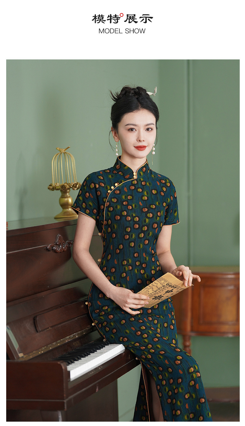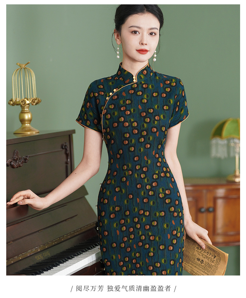 TZRY-新款重磅香云纱真丝桑蚕丝复古旗袍斜襟真襟旗袍裙日常优雅旗袍