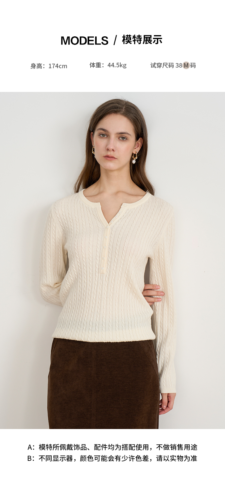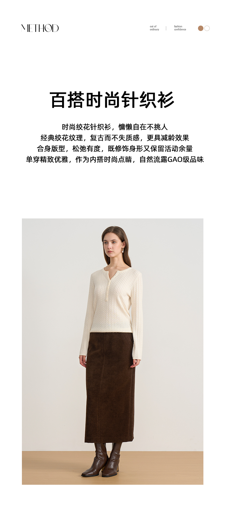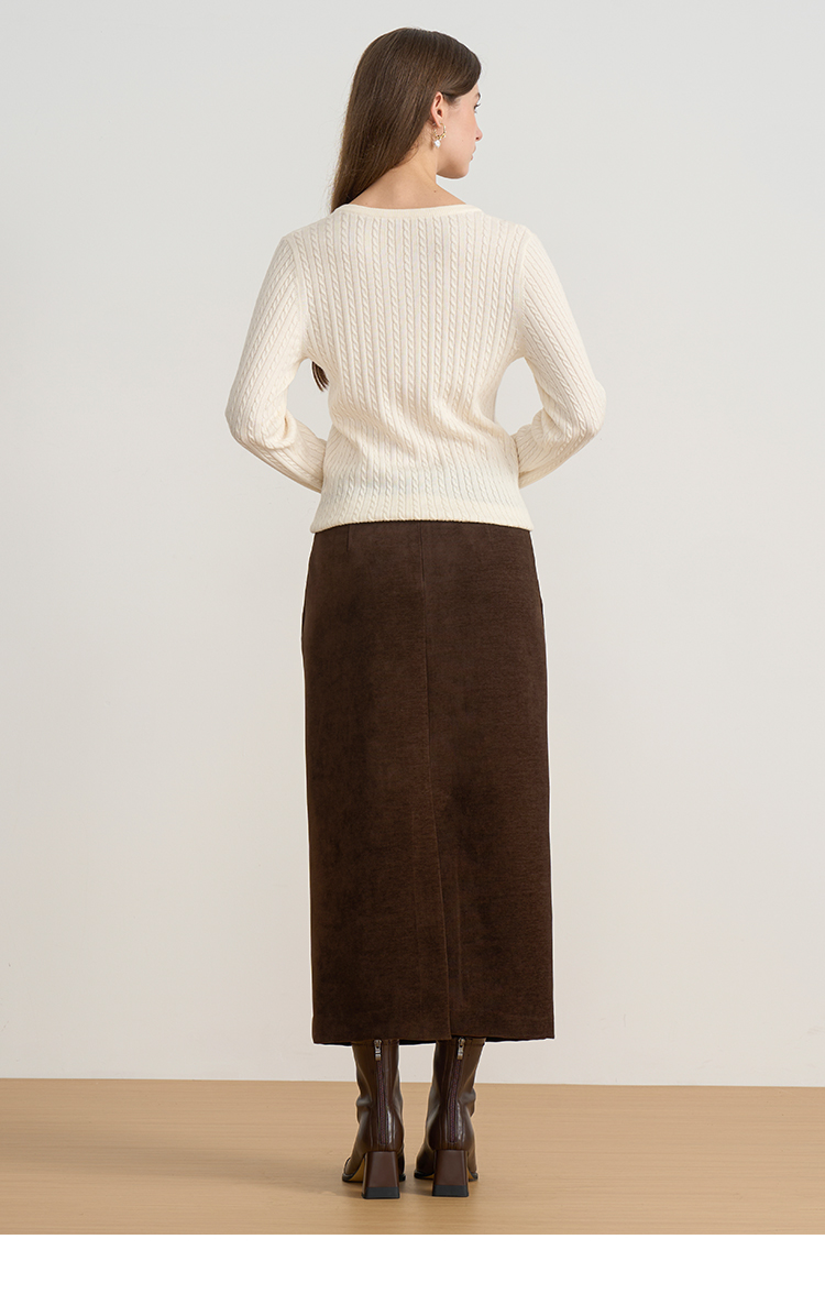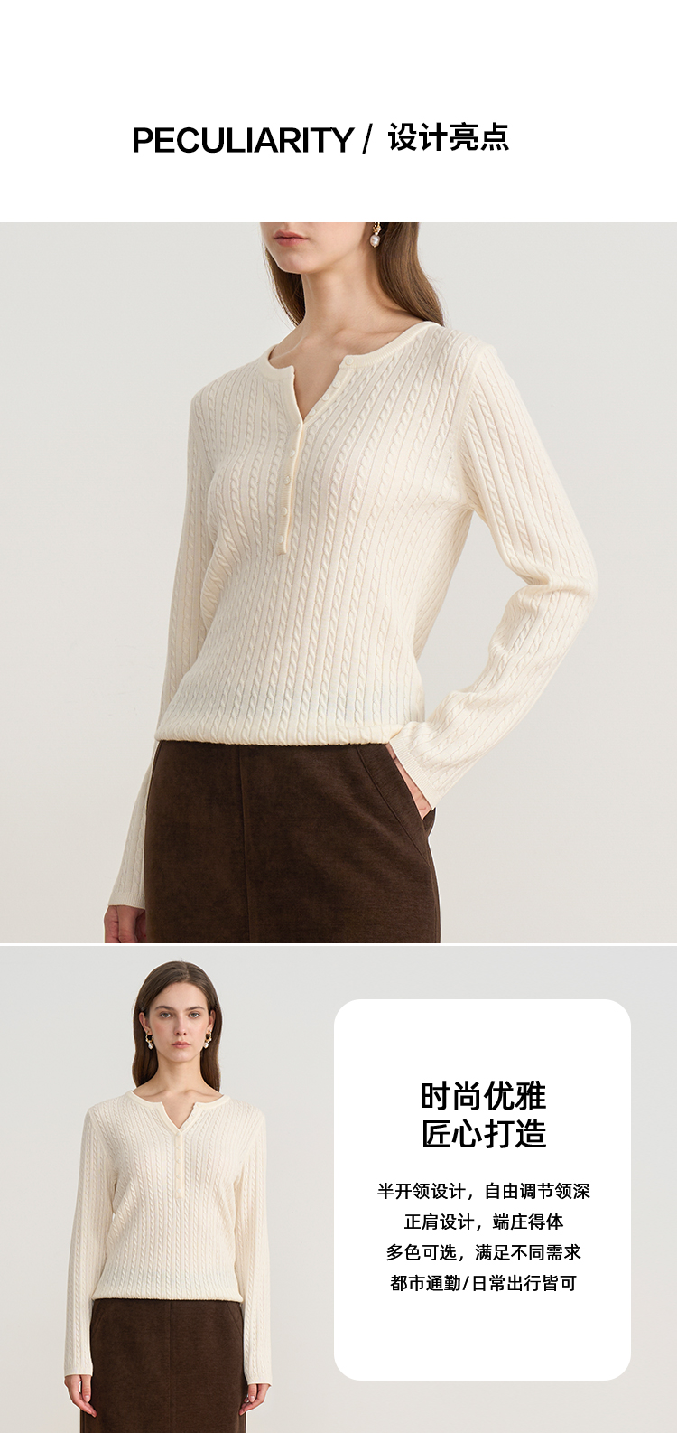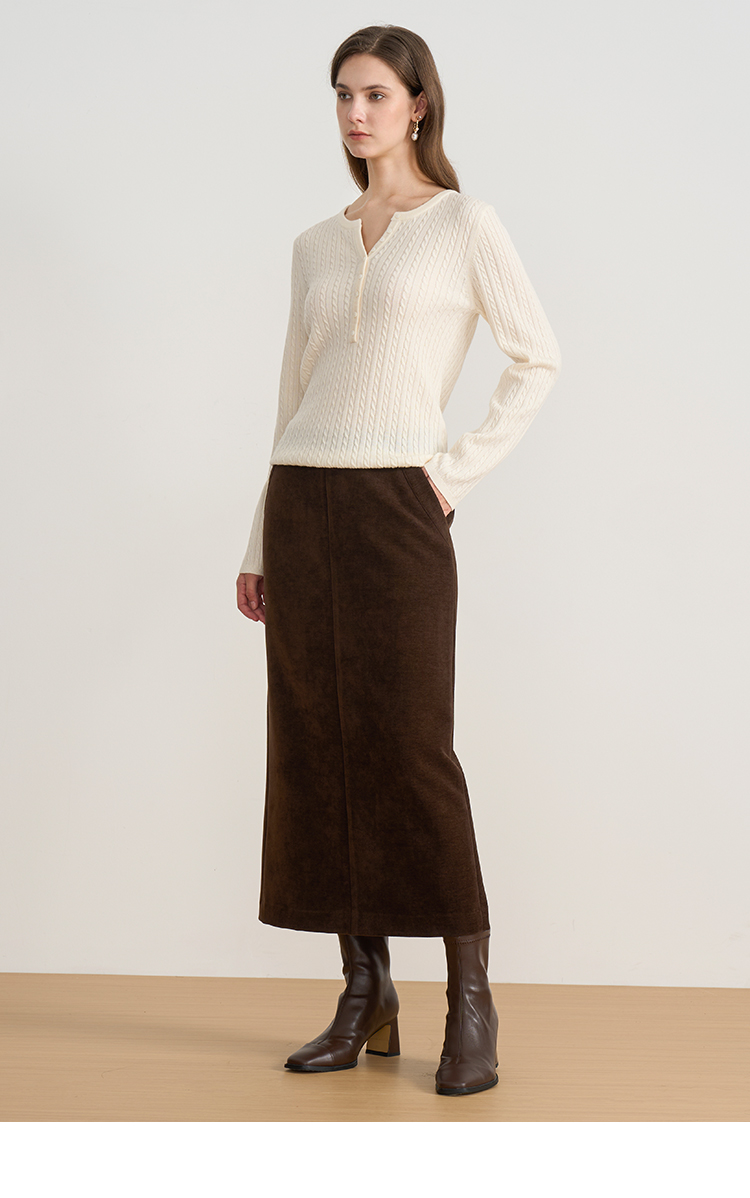 EITIE爱特爱复古绞花内搭打底显瘦简约毛衣V领羊毛衫秋季新款针织衫D2501913