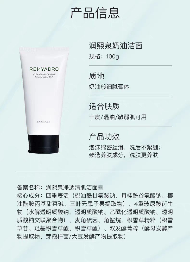 华熙生物润熙泉洗卸润三合一小奶油洁面膏✅掏空毛孔垃圾净油光👍体验用养肤精华洗脸❗ 清洁/卸妆/养肤一瓶搞定🉑温和掏空毛孔垃圾 小脸越洗越强韧🉑解锁贵妇级清洁体验💦