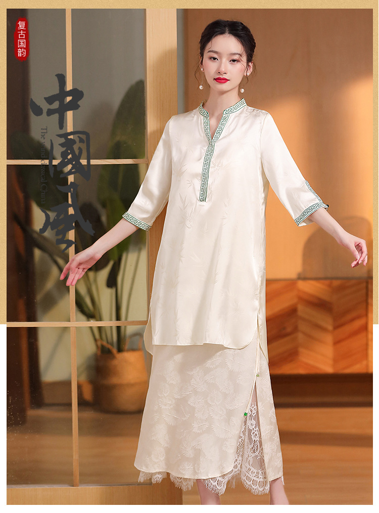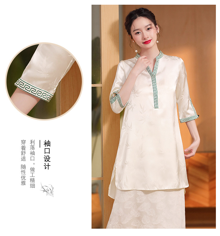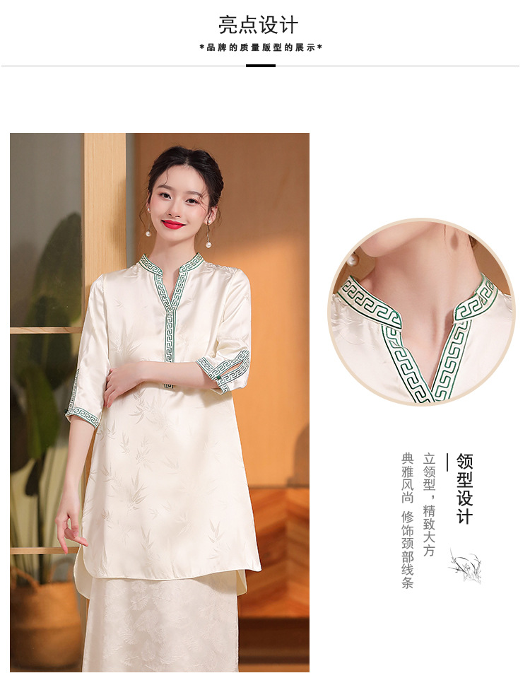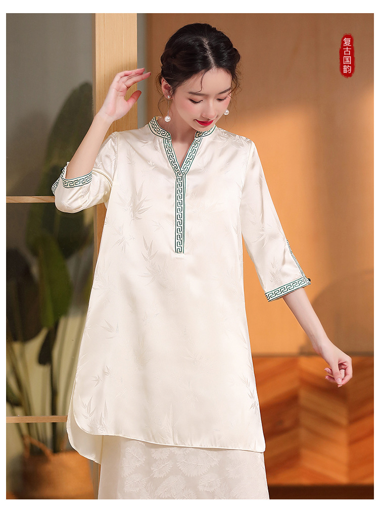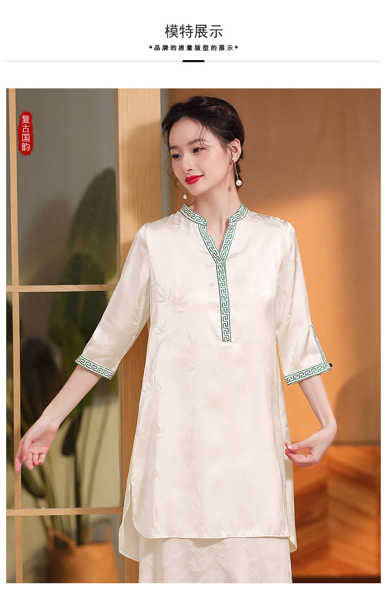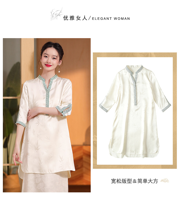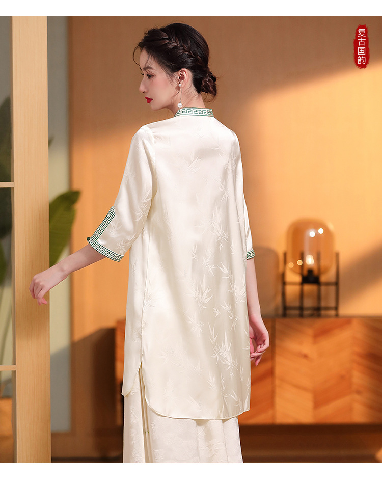 宽松长款,长袖改良唐装女春夏新提花绣回纹雅竹国风上衣AYK-QF-221126