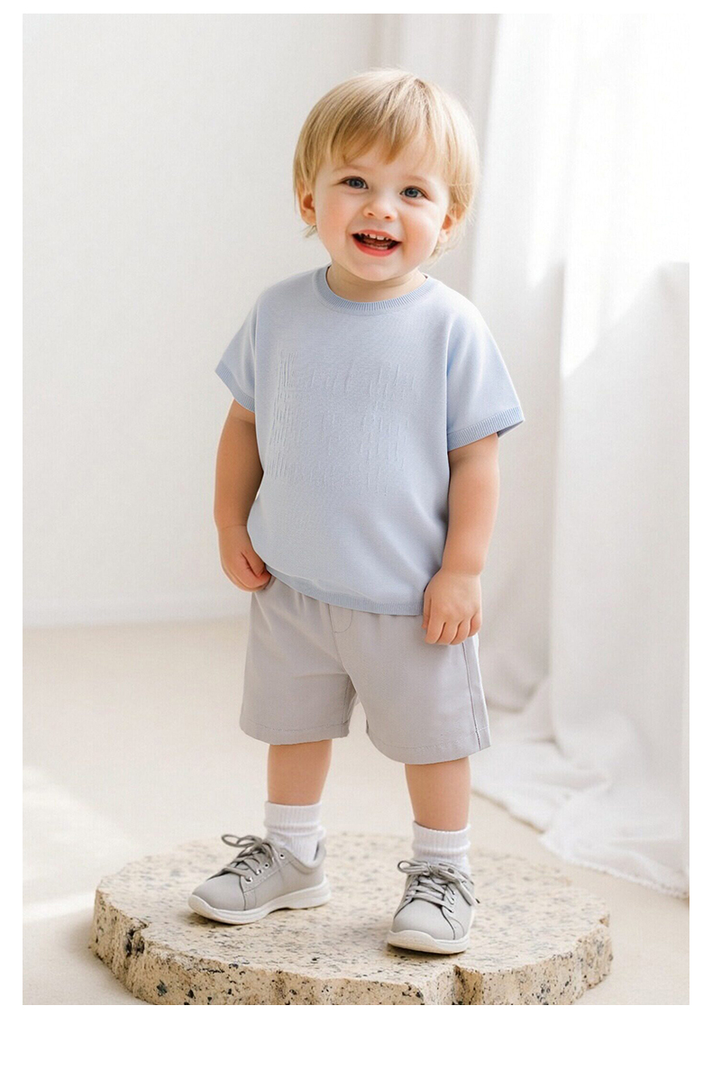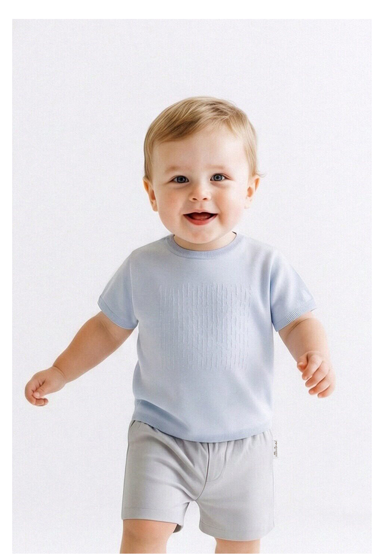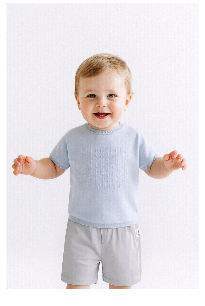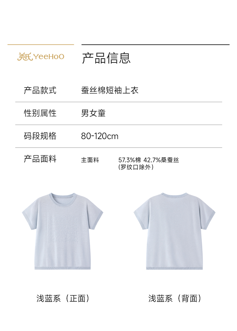 【高定系列】英氏儿童衣服男童短袖T恤女童夏季圆领桑蚕丝上衣