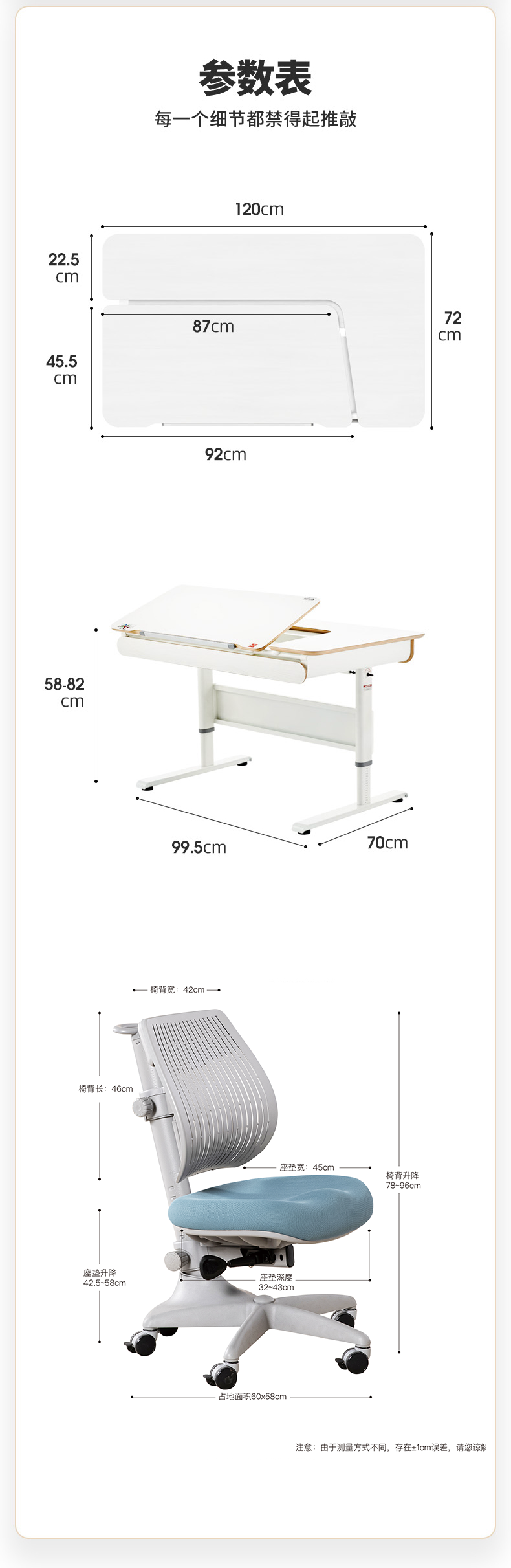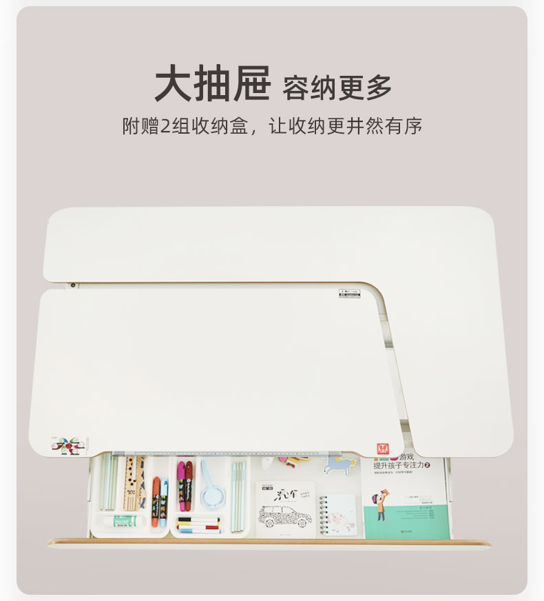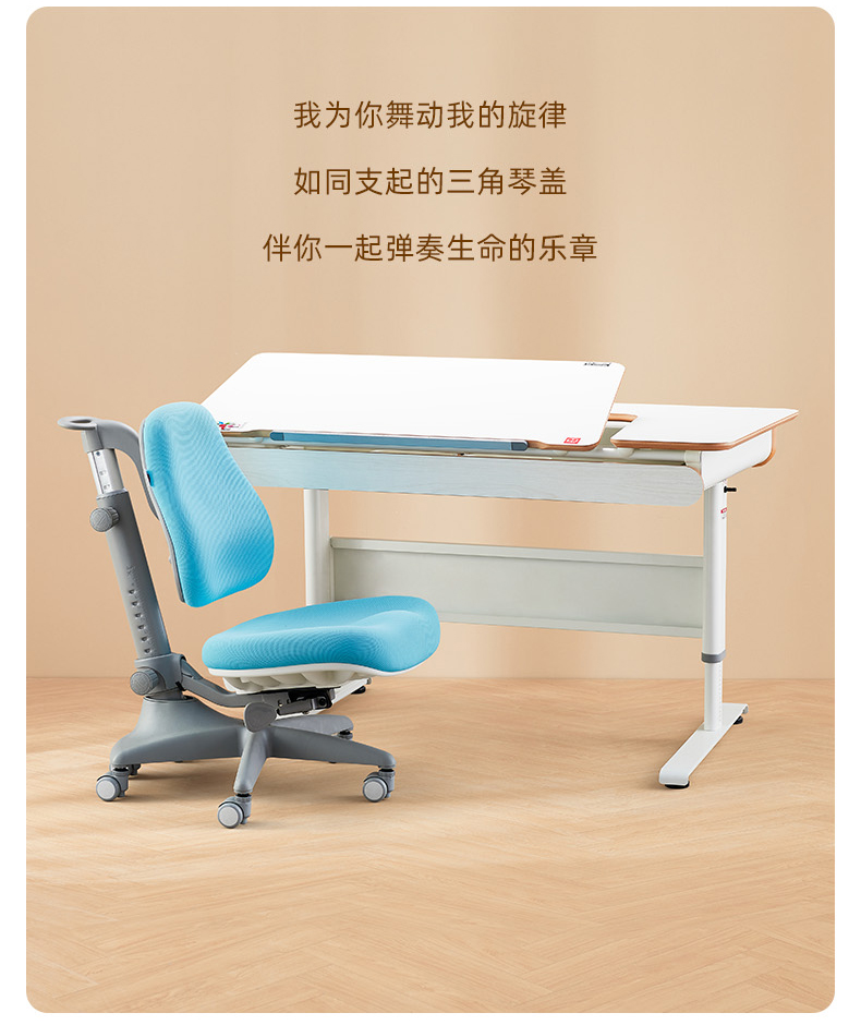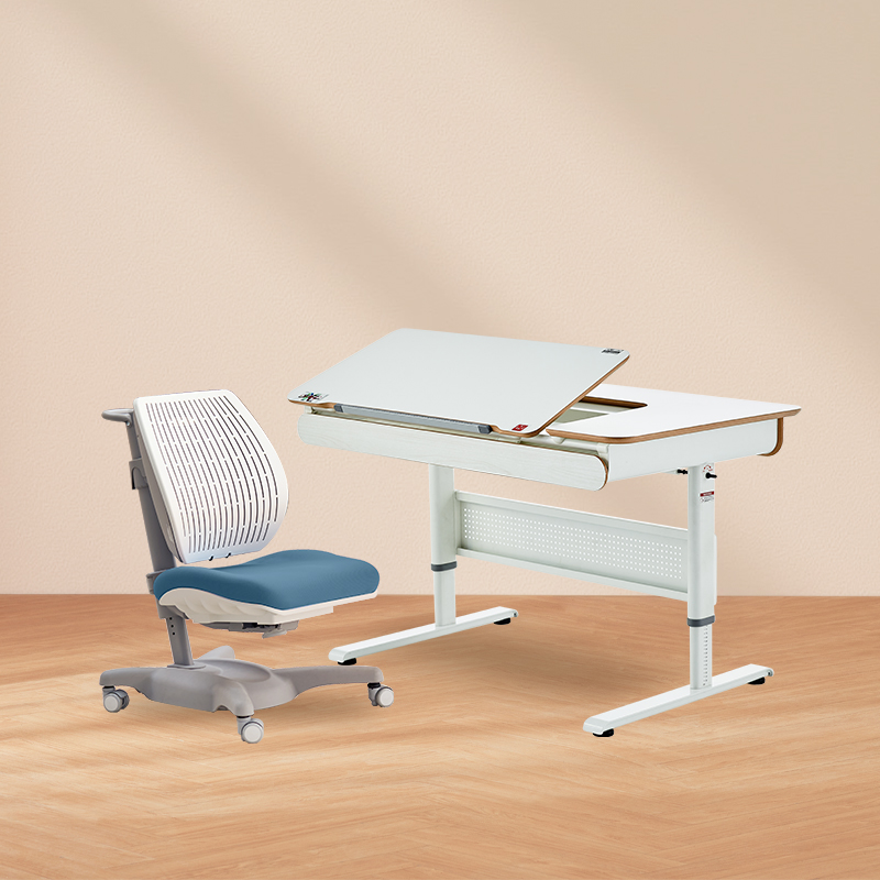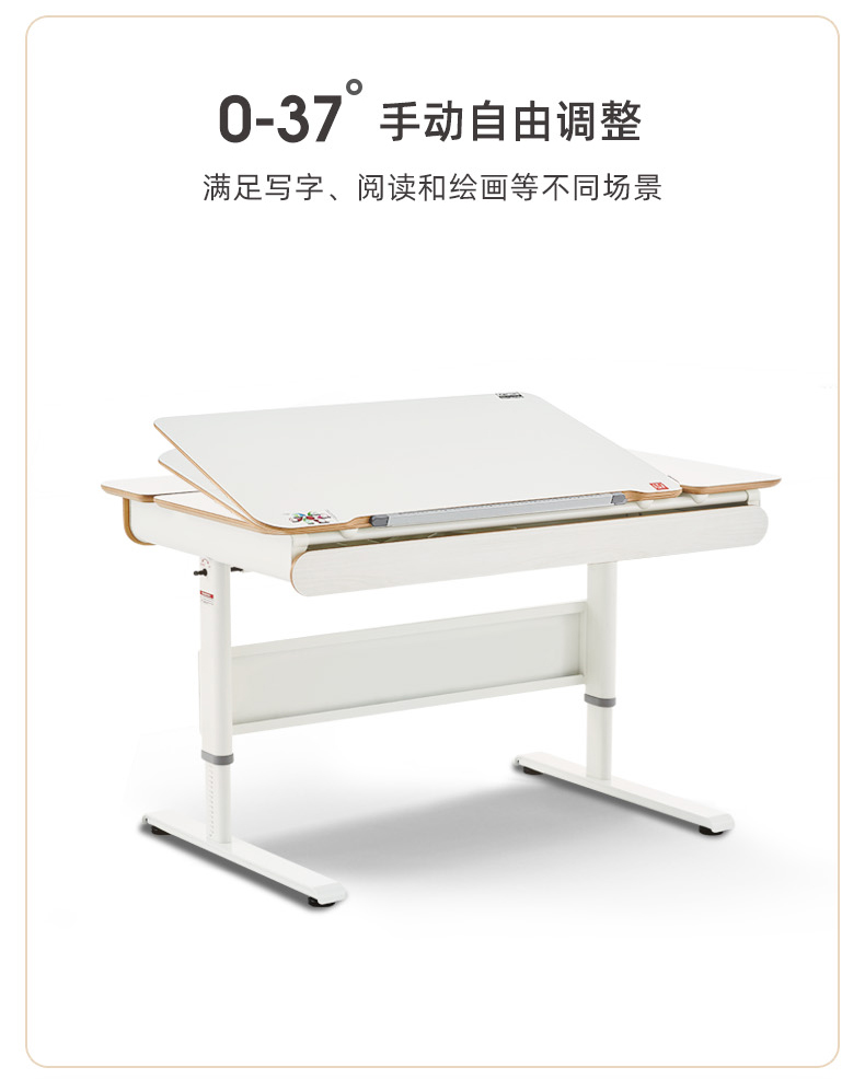 3岁+ 康朴乐柯蒂斯桌(120cm*72cm)+柏拉图椅 | 牛顿椅 手动自由调整角度 满足写字、阅读、绘画等不同场景 2组收纳抽屉 更好收纳 赠原装椅套