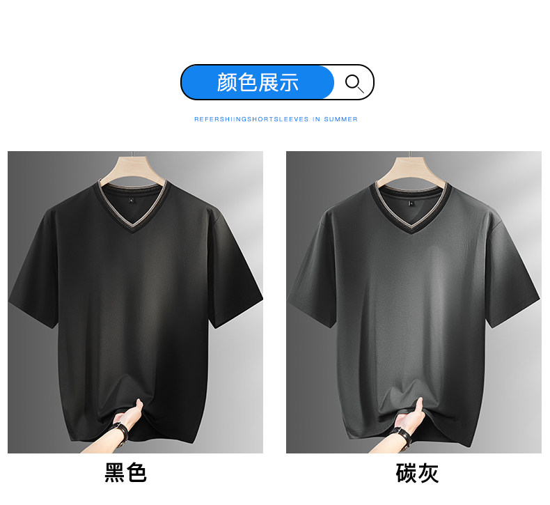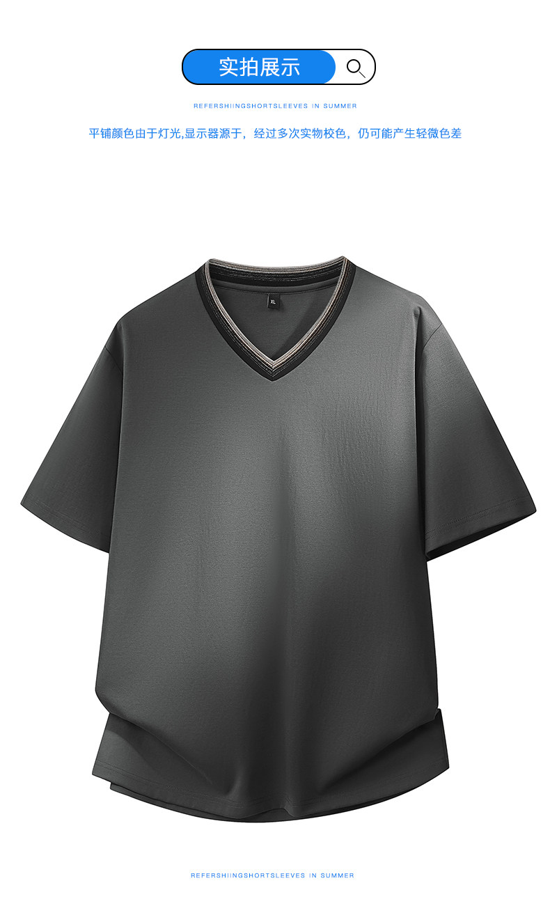 【DPF】大依优型大码男装夏季V领短袖T恤休闲百搭上衣棉质透气男士加大