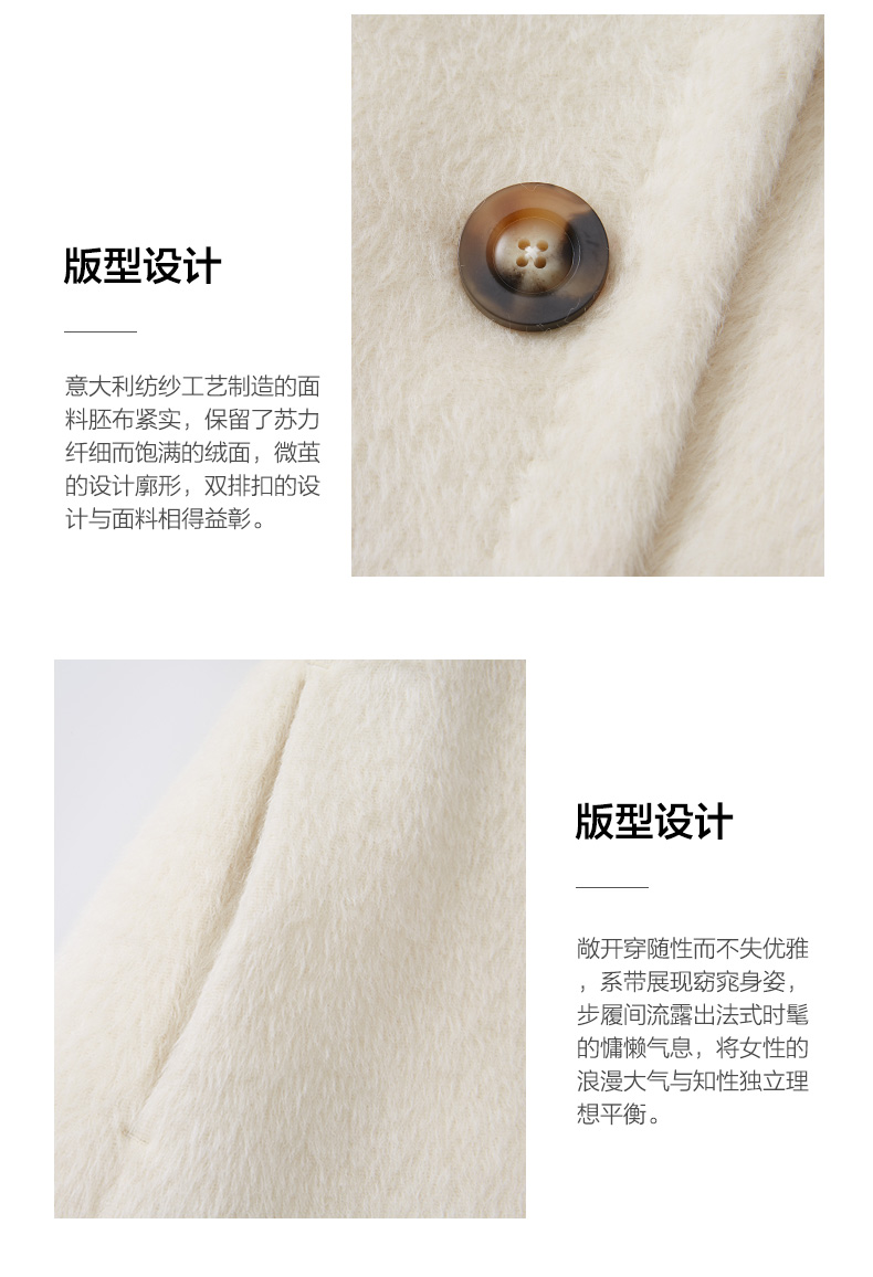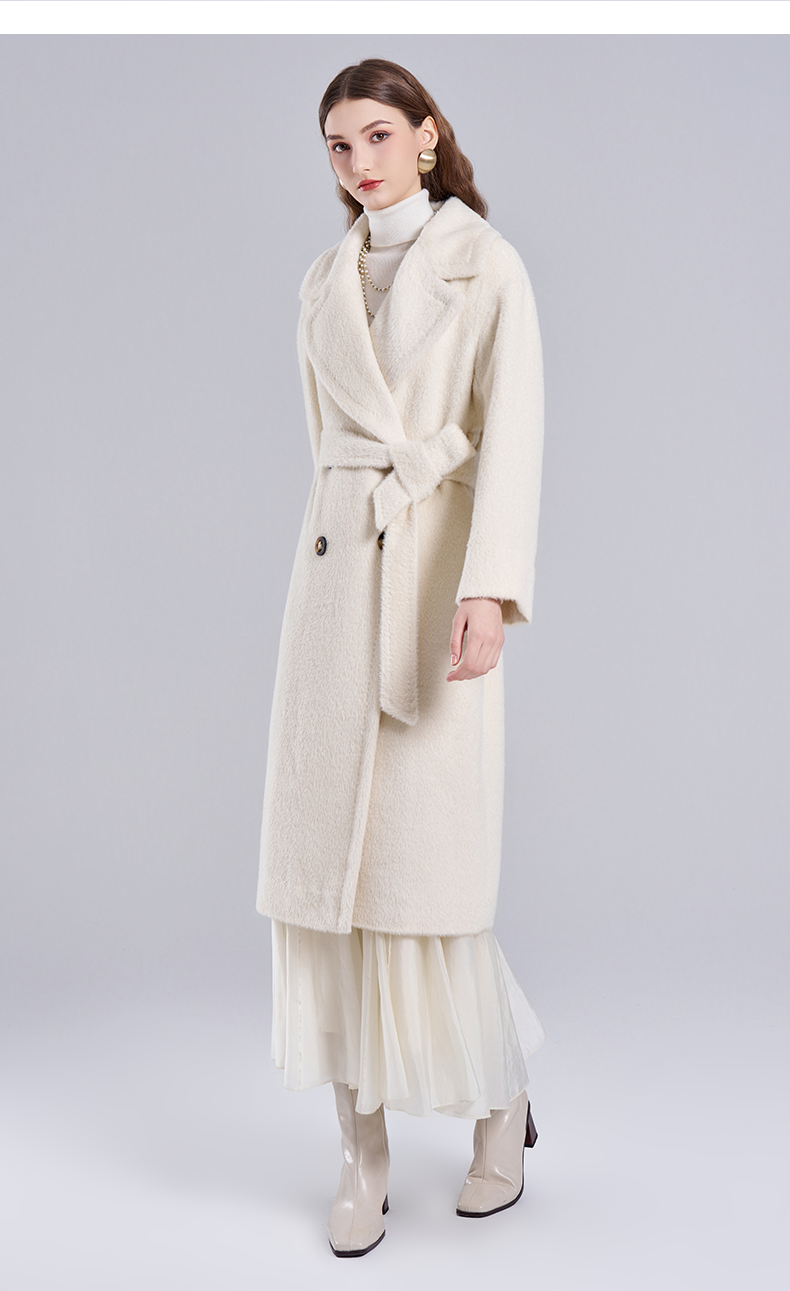 【羊驼毛】【绵羊毛】乔万尼羊驼毛大衣外套女秋冬新款白色收腰高级感EF4A128