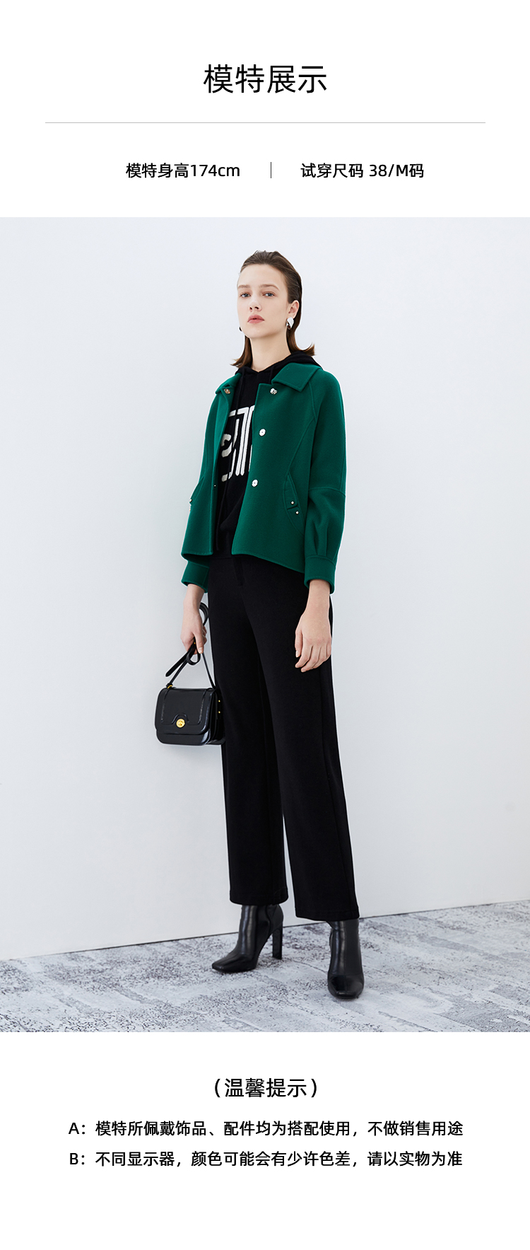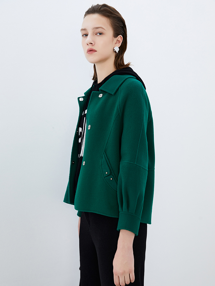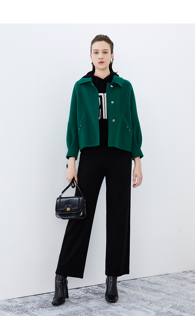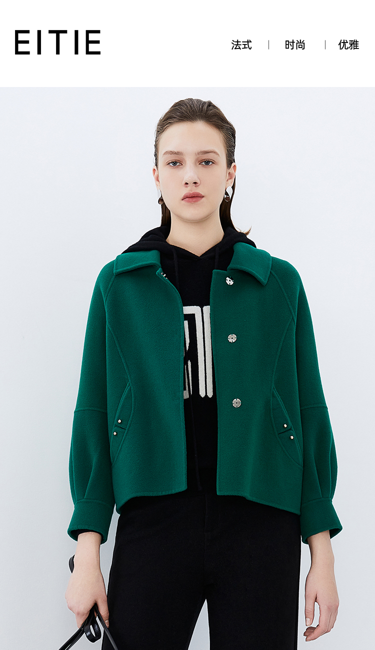 EITIE爱特爱冬季新款百搭纯色毛呢大衣女短外套7614317