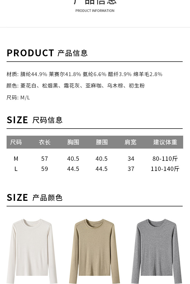 产品名称:KEMU严选莱赛尔正肩圆领羊毛打底衫