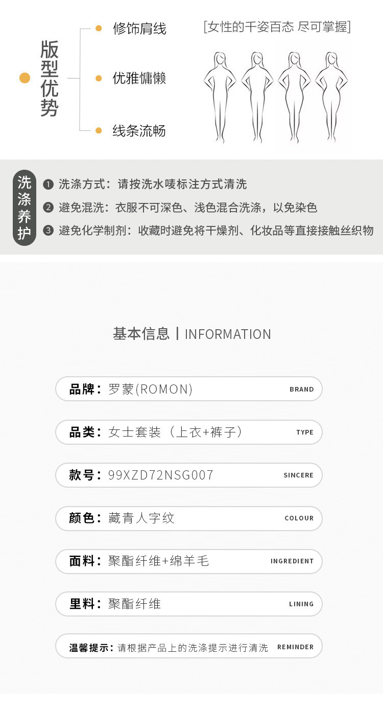 【50羊毛】罗蒙女士西服套装商务通勤舒适含绵羊毛职业两件套女