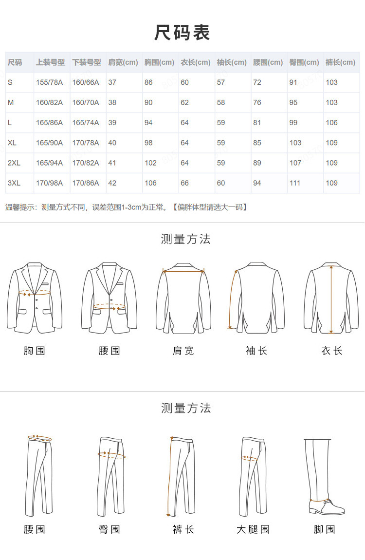 "西服面料成分:51.4%聚酯纤维 48.6%绵羊毛 西服里料成分:100%聚酯纤维 西裤面料成分:51.4%聚酯纤维 48.6%绵羊毛 西裤里料成分:100%聚酯纤维"