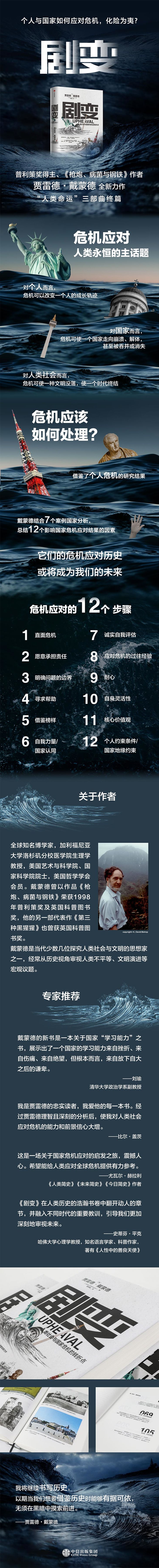 2.继《枪炮、病菌与钢铁》《崩溃》后,《剧变》为“人类命运”三部曲的终篇。