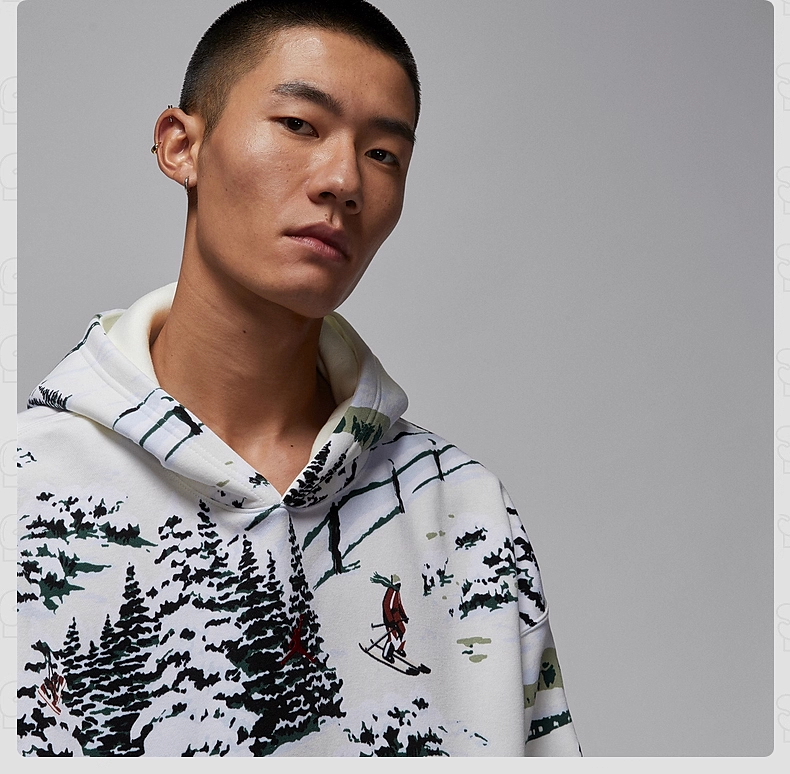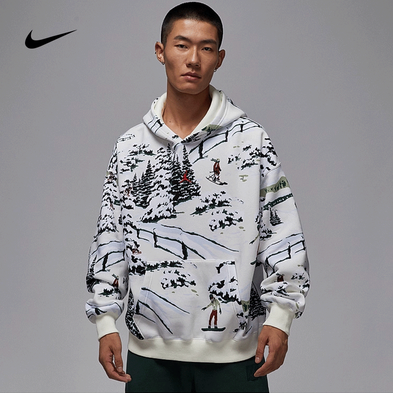 Jordan耐克加绒卫衣男冬季图案印花加绒保暖连帽套头衫HV1051-133