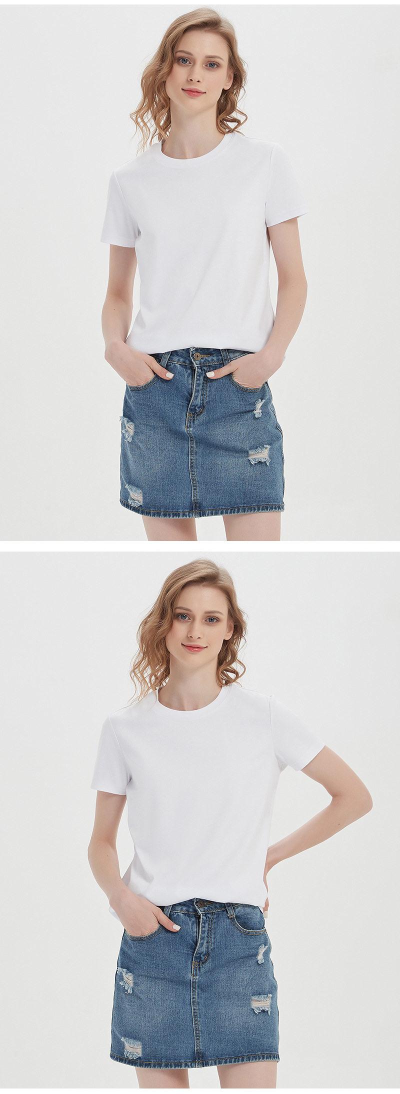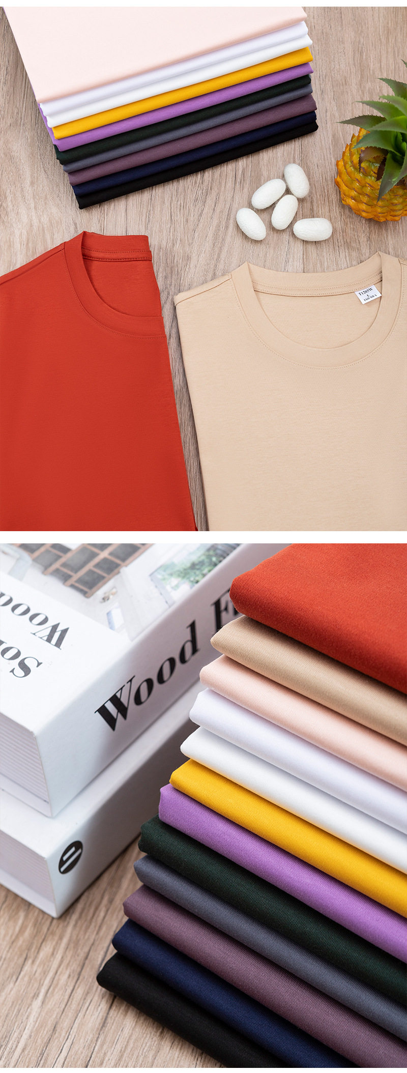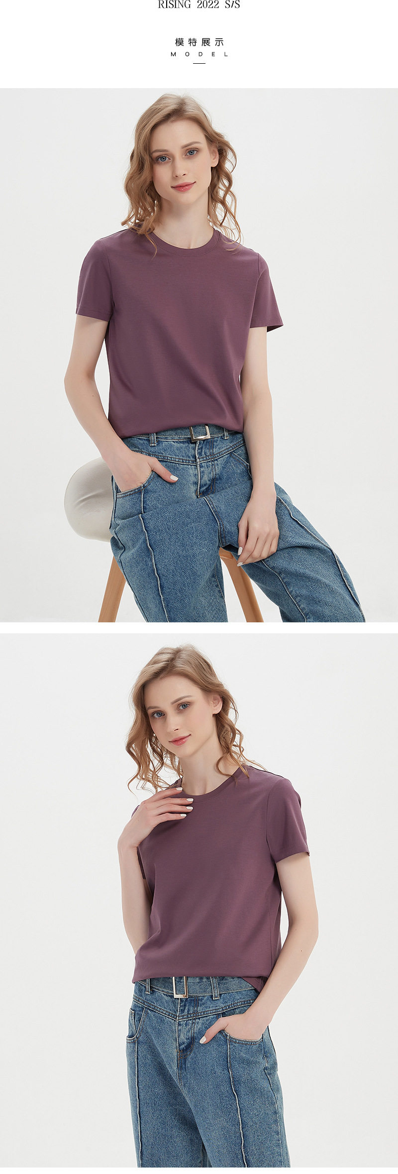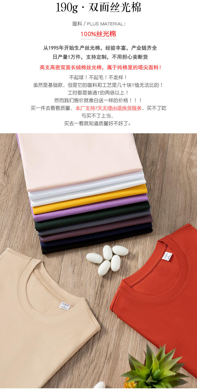 高级感190g高支双面丝光棉t恤女夏短袖纯棉液氨白色圆领t恤 RSFZ-T1205W