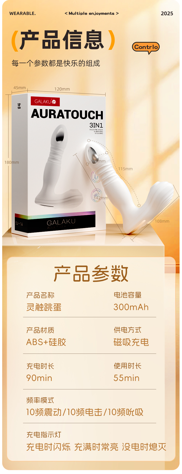 GALAKU灵触AI版白色女用吮吸电击入体震动棒