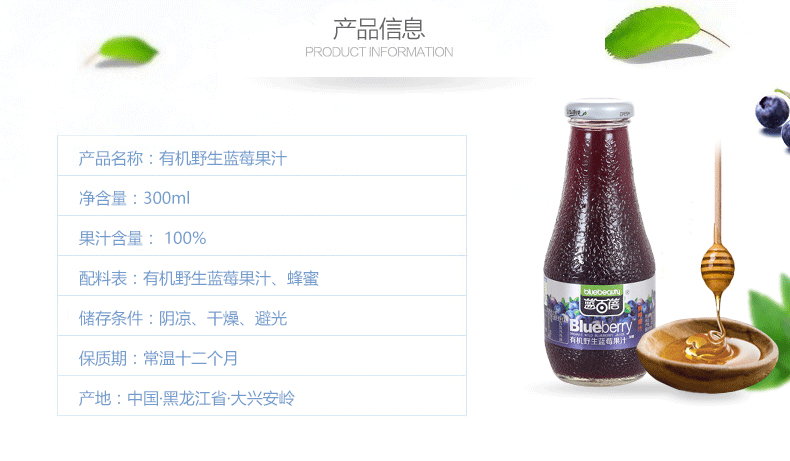 基地直发-有机野生蓝莓果汁礼盒300mlx6(果汁含量百分之百)