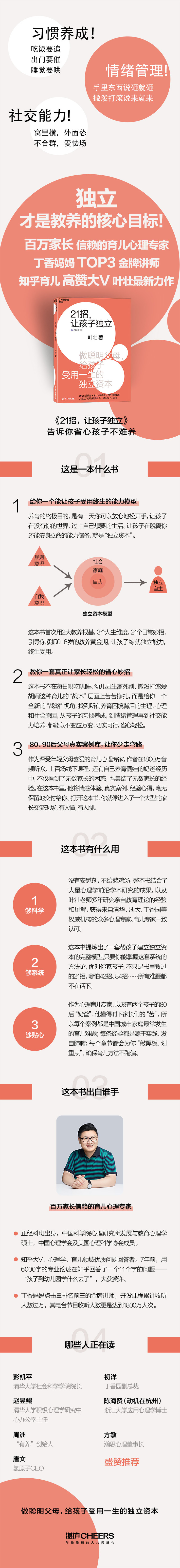 百万家长信赖的育儿心理专家叶壮,从立稳2大教养根基入手,围绕3个人生维度,教你21个日常生活妙招,给孩子受用一生的独立资本,千万别错过你家孩子的独立性养成关键期。