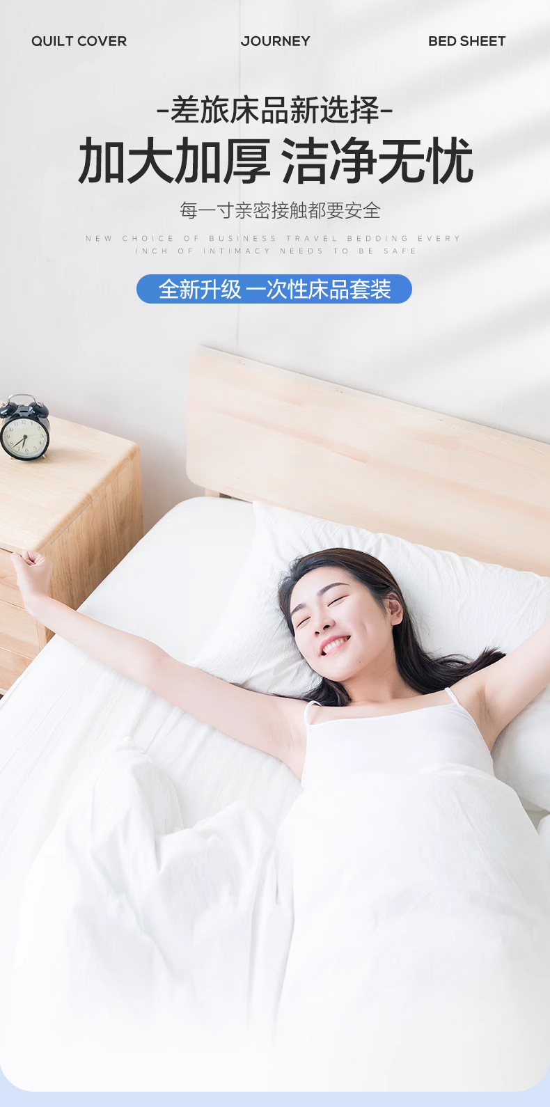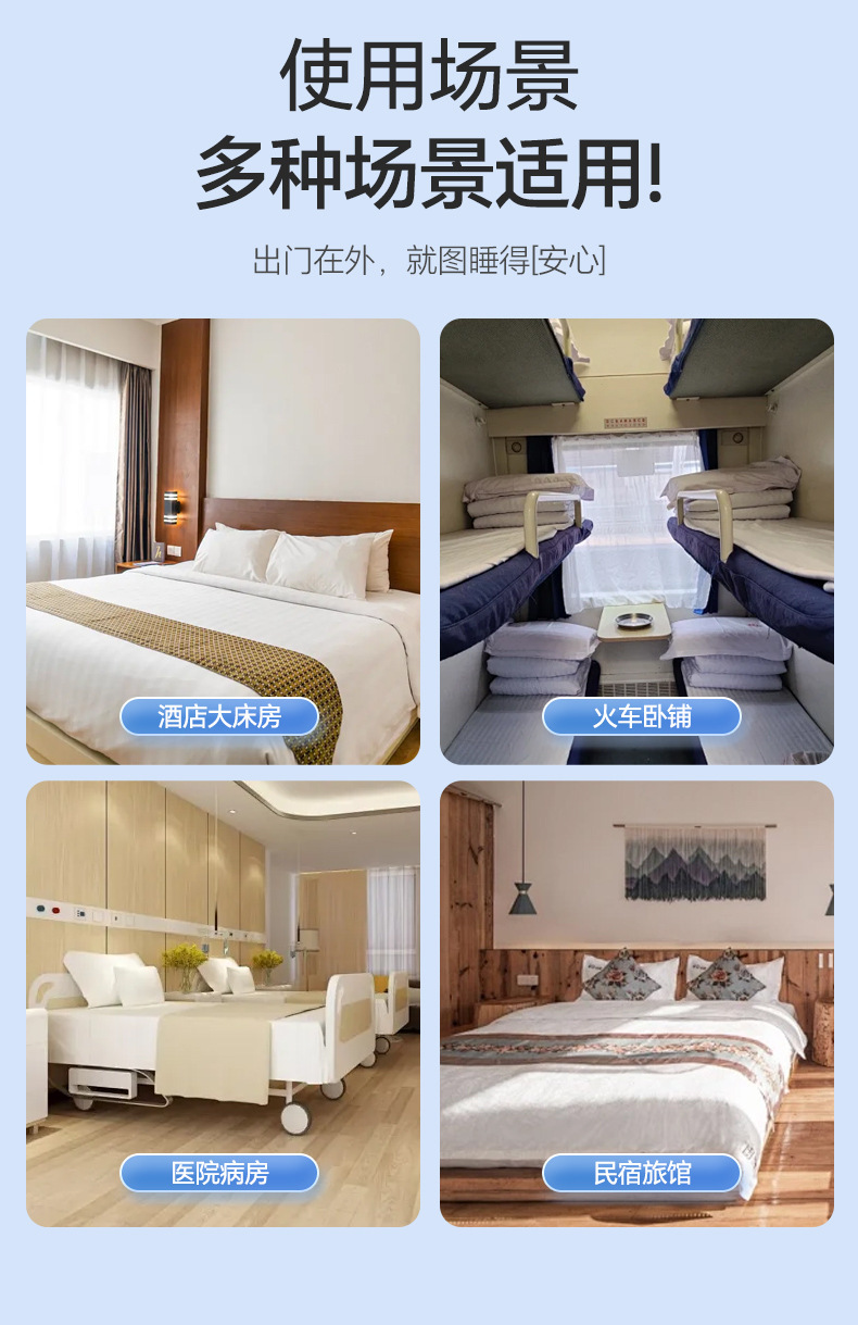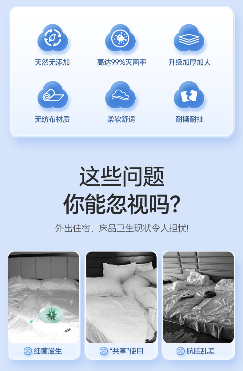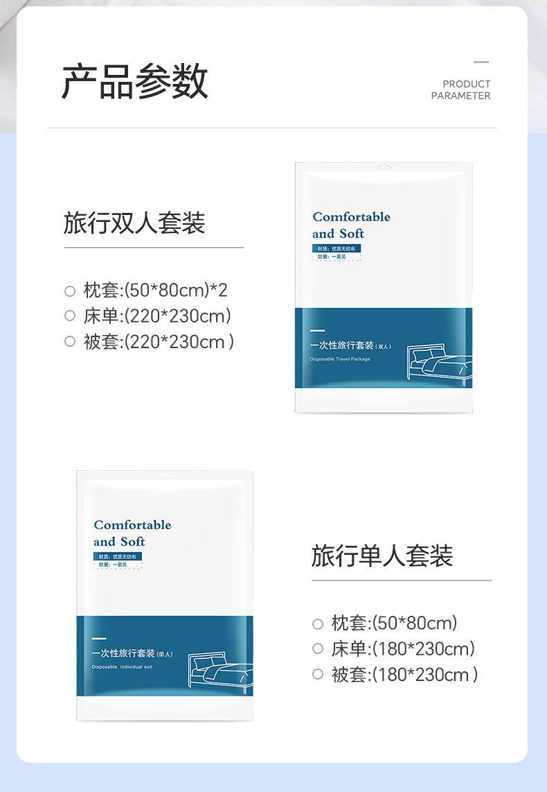 【差旅床品新选择,加大加厚,洁净无忧】一次性床单枕套 被罩床笠酒店 旅行隔脏灭菌 双人免洗床上用品四件套-QQ