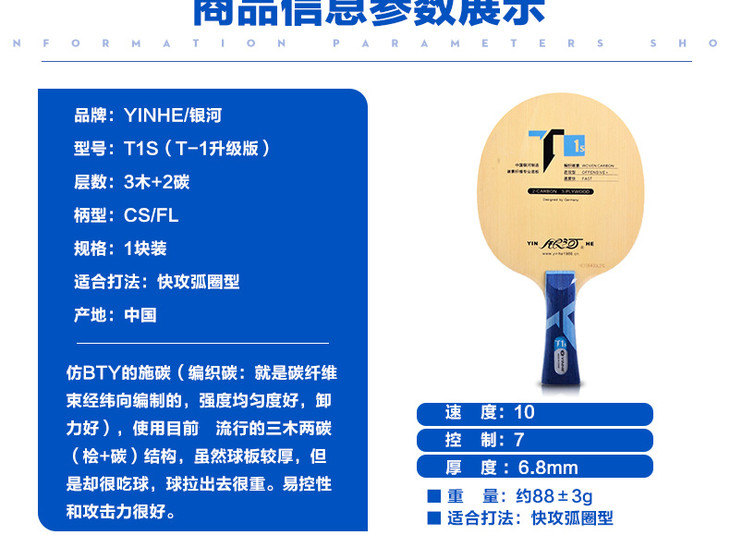 银河T1S升级T2S T3S T4S碳素纤维专业乒乓球底板球拍