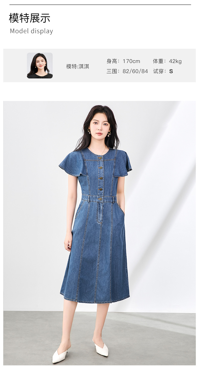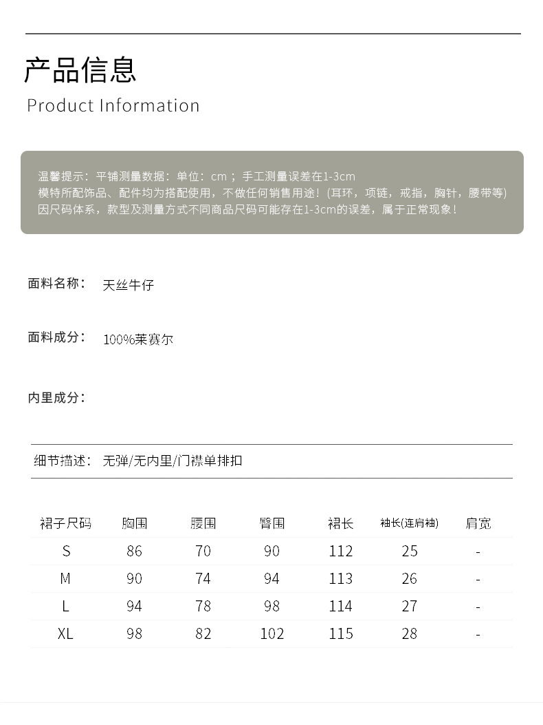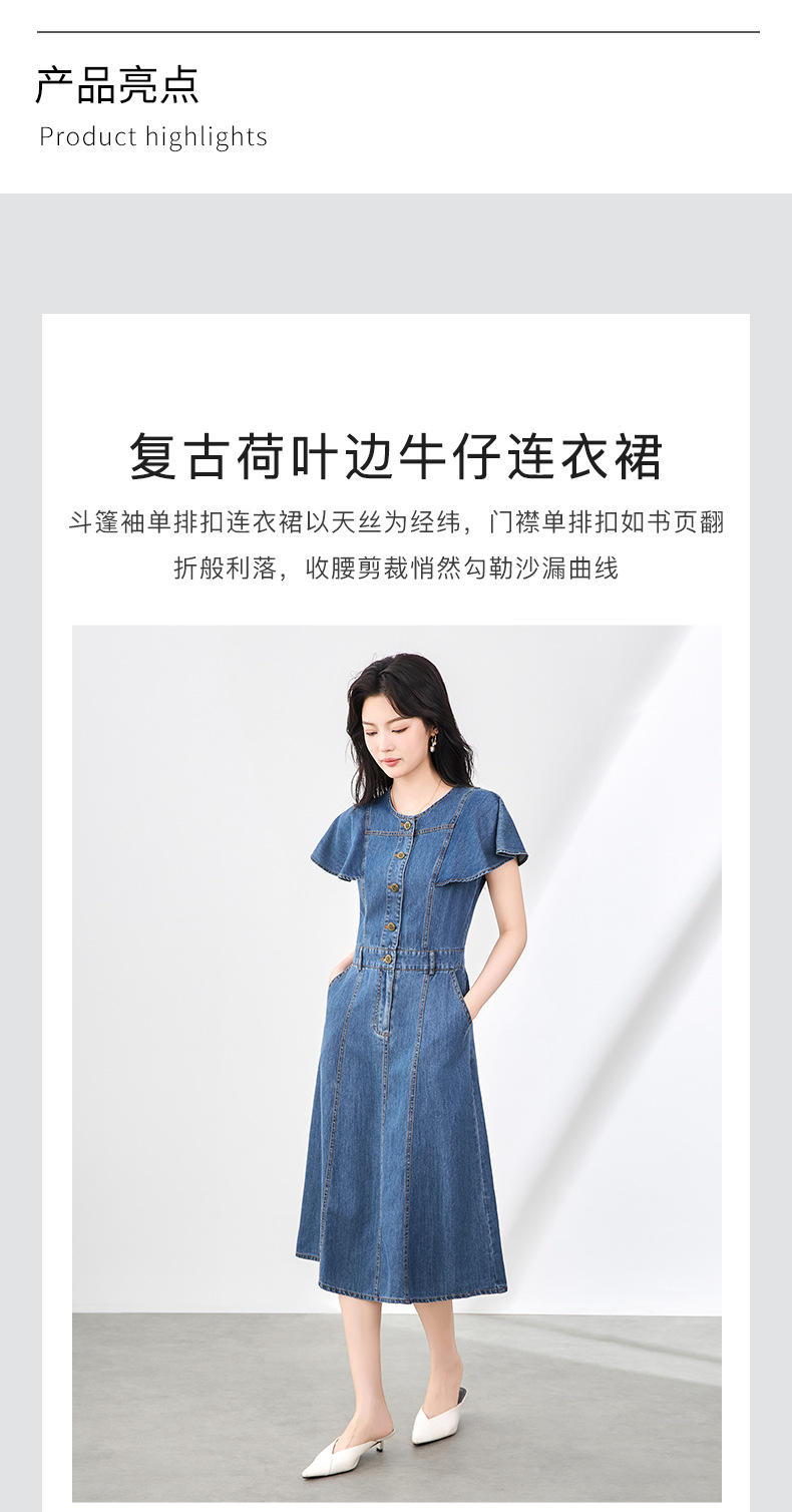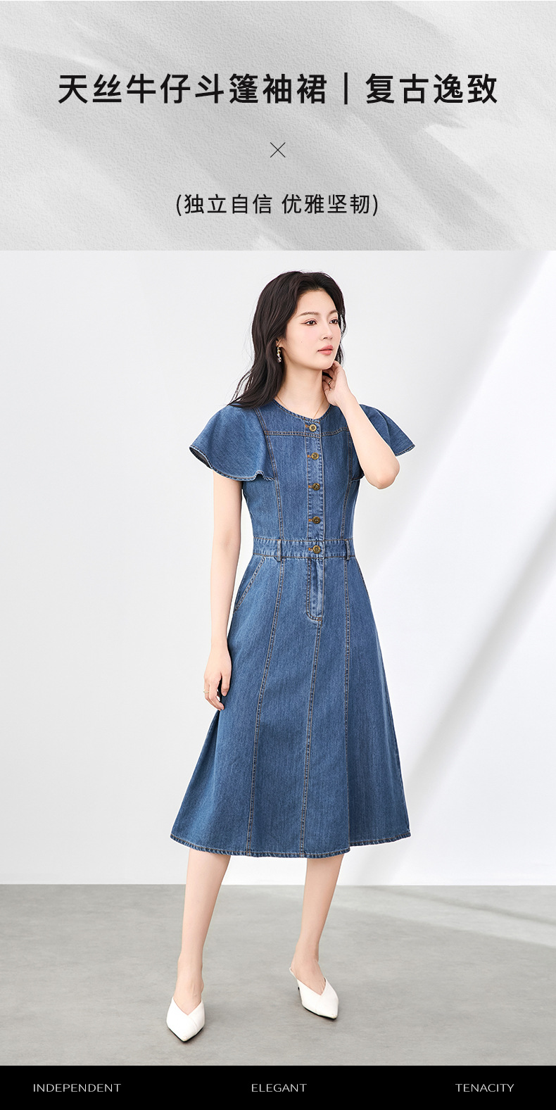 「高货wl」全新升级【铂金会员358/天猫479/差价121】(93030)洛诗琳气质薄款天丝牛仔连衣裙2025夏季法式复古收腰裙子wl93030