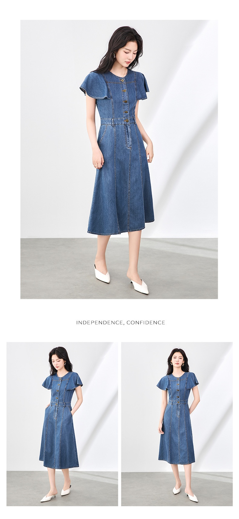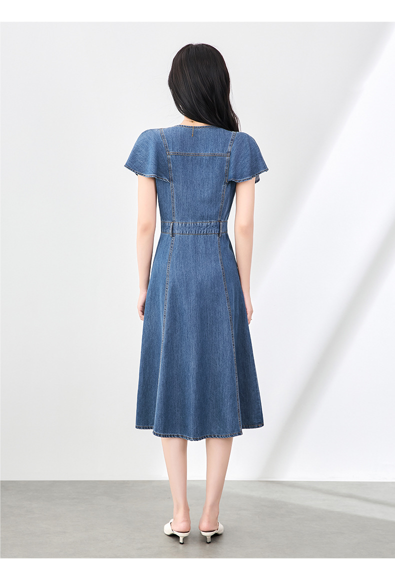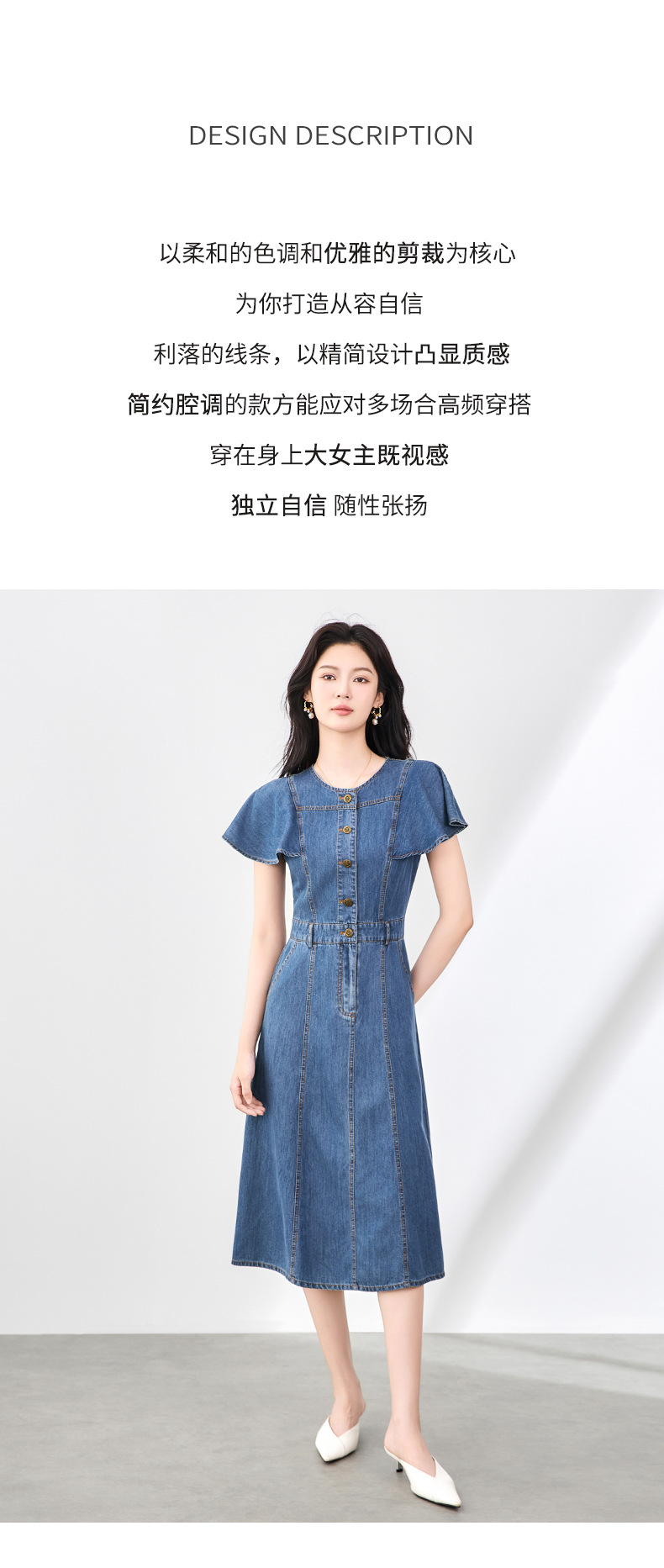 「高货wl」全新升级【铂金会员358/天猫479/差价121】(93030)洛诗琳气质薄款天丝牛仔连衣裙2025夏季法式复古收腰裙子wl93030