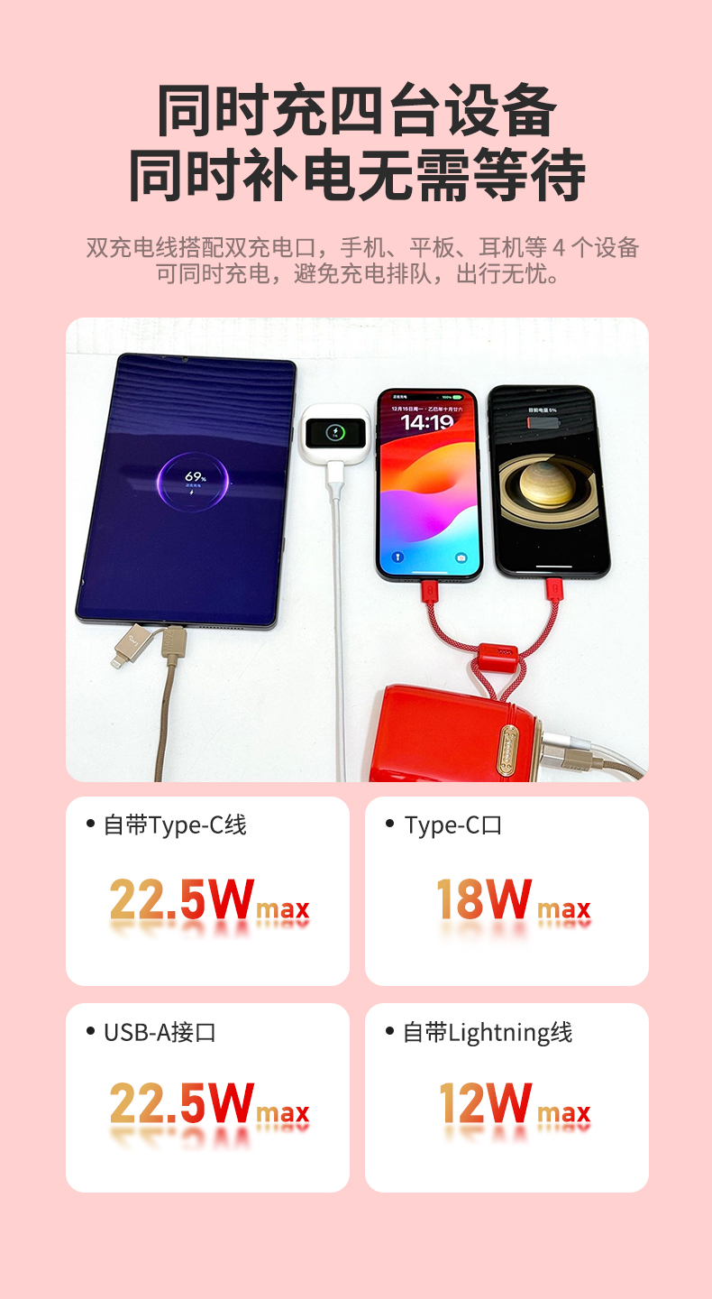 建议使用15W以上的充电头,使用快充线和快充头充电会更快哦,如果低于15W就会出现充电慢、冲不进、充不满等情况