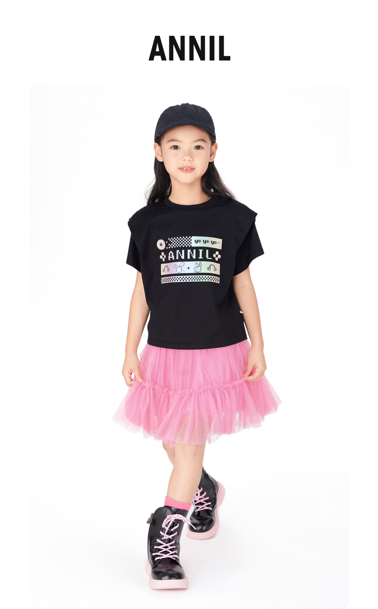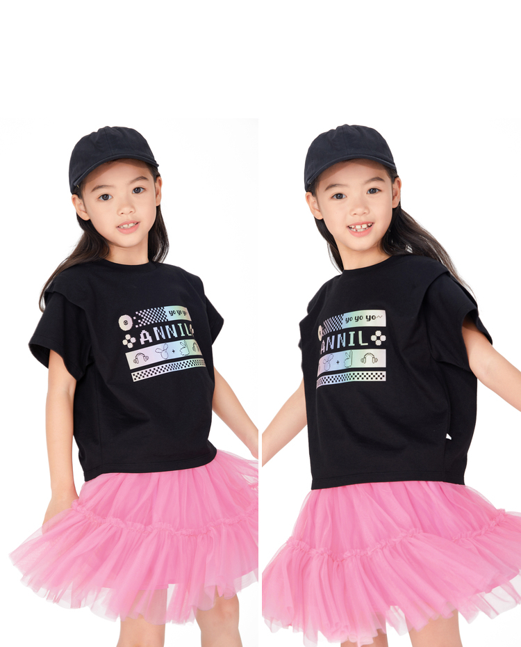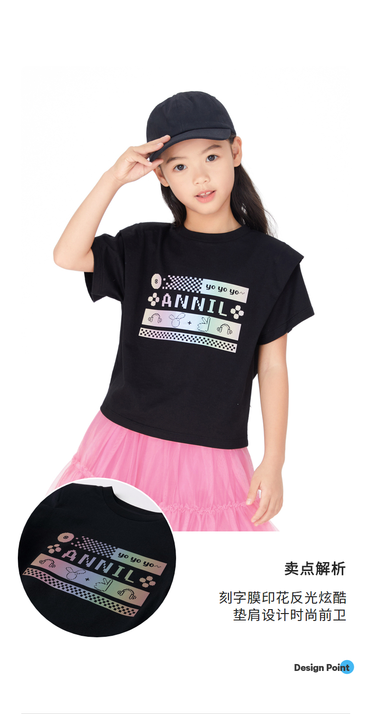 【实体店同款】女童装t恤纯棉夏装新款印花时髦短袖上衣安奈儿童装AG321718