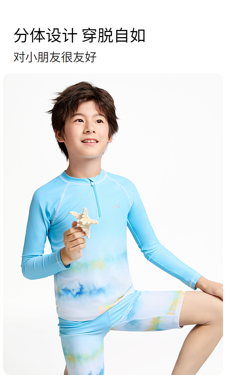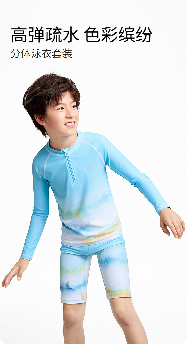 男童分体长袖泳衣套装夏季新款安奈儿童装JB527060