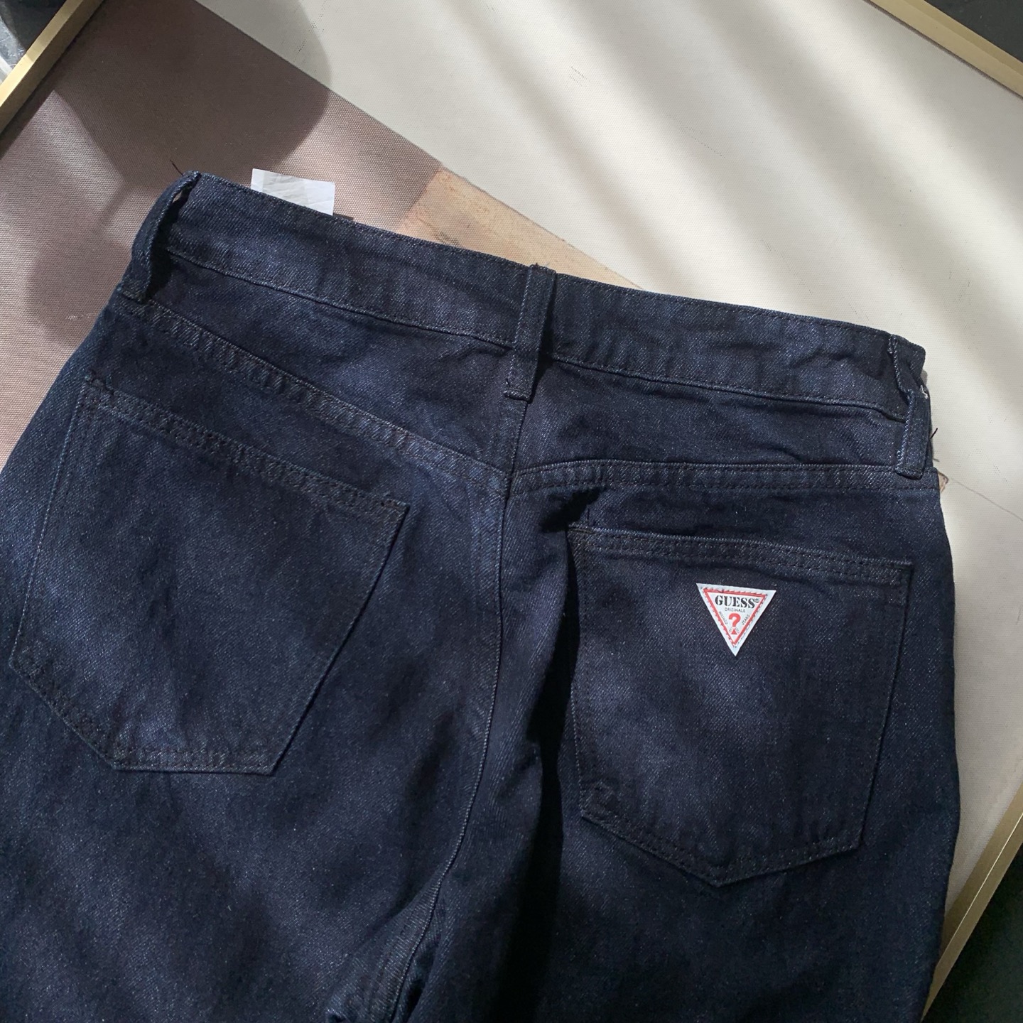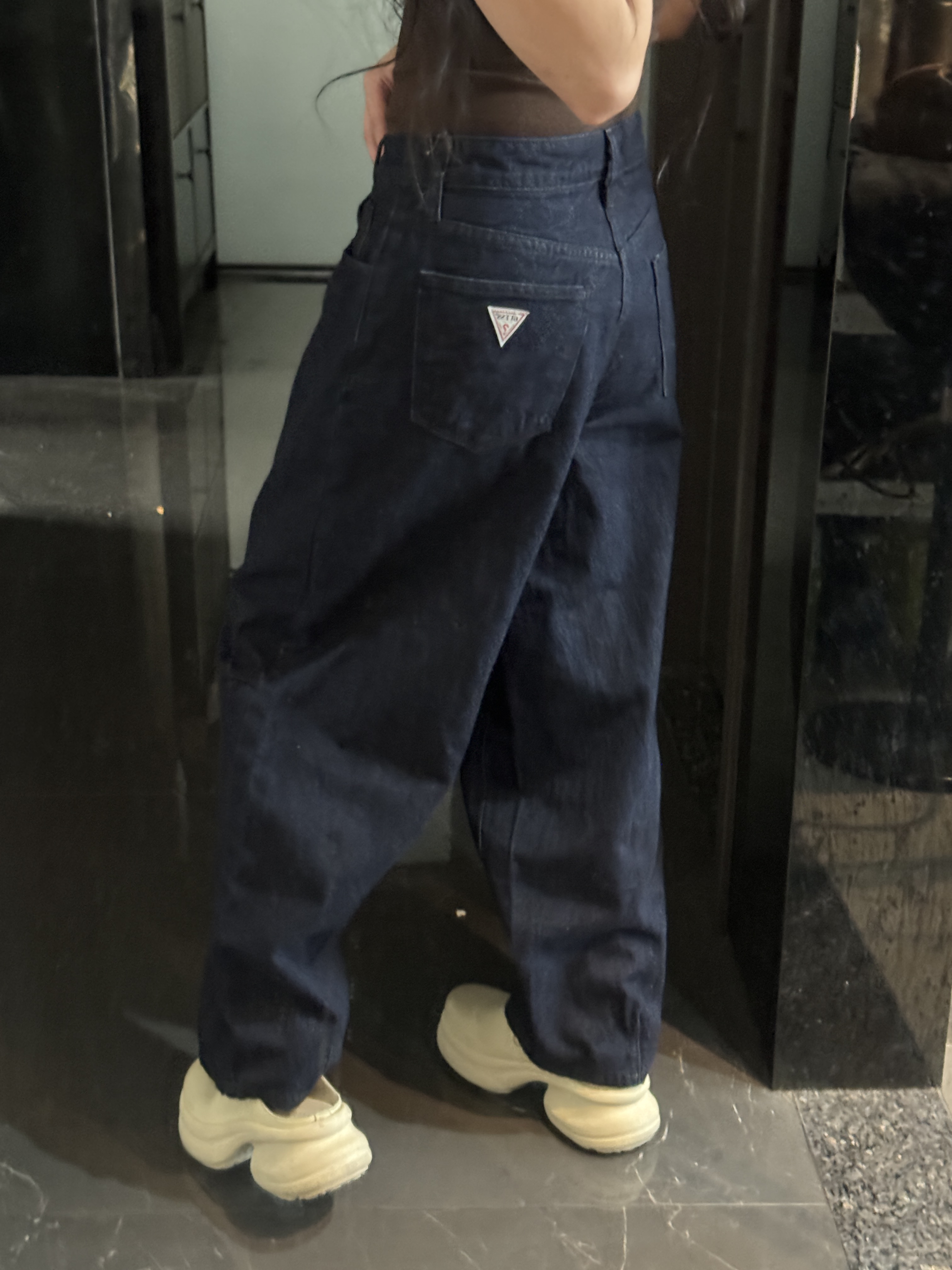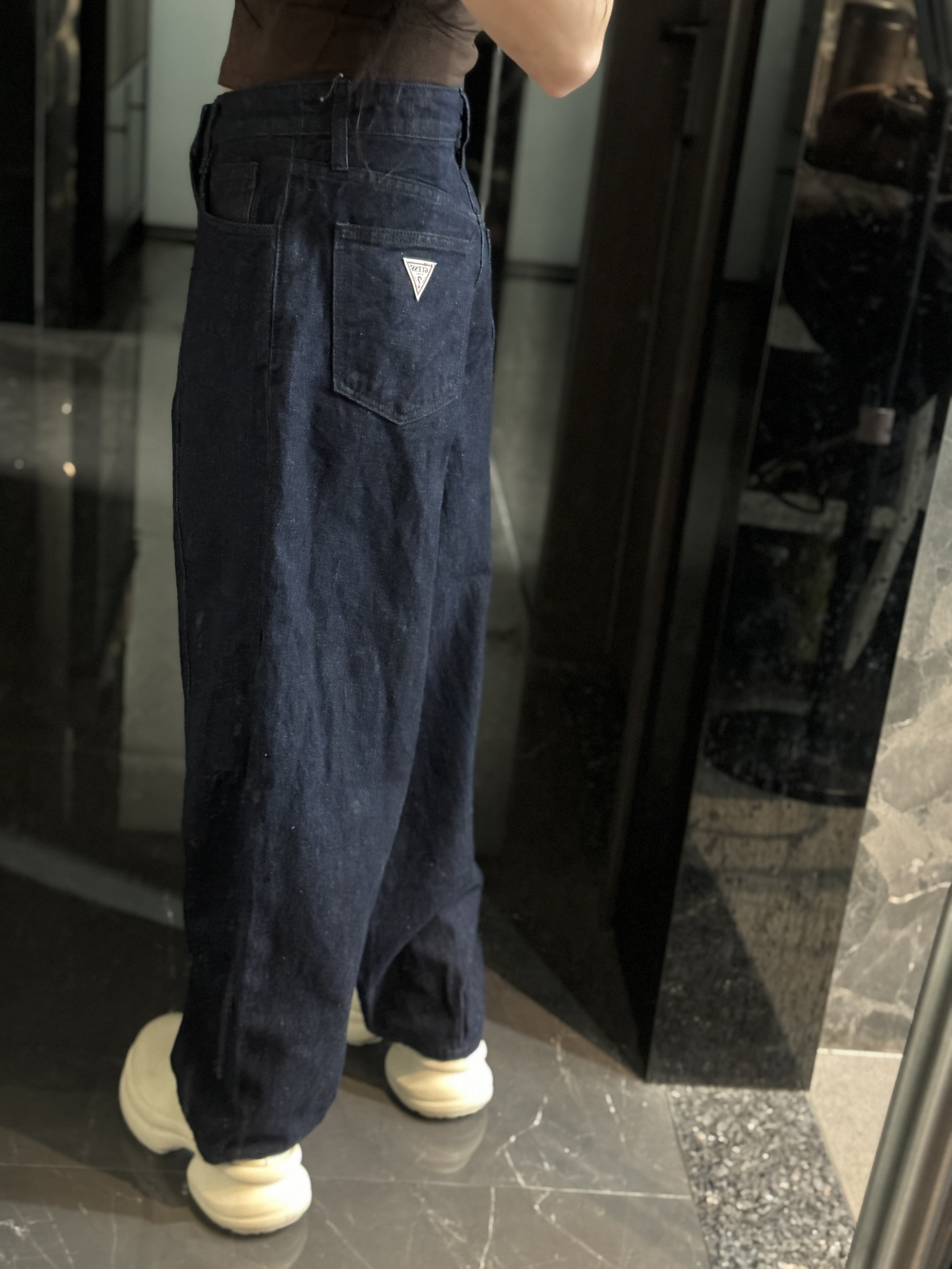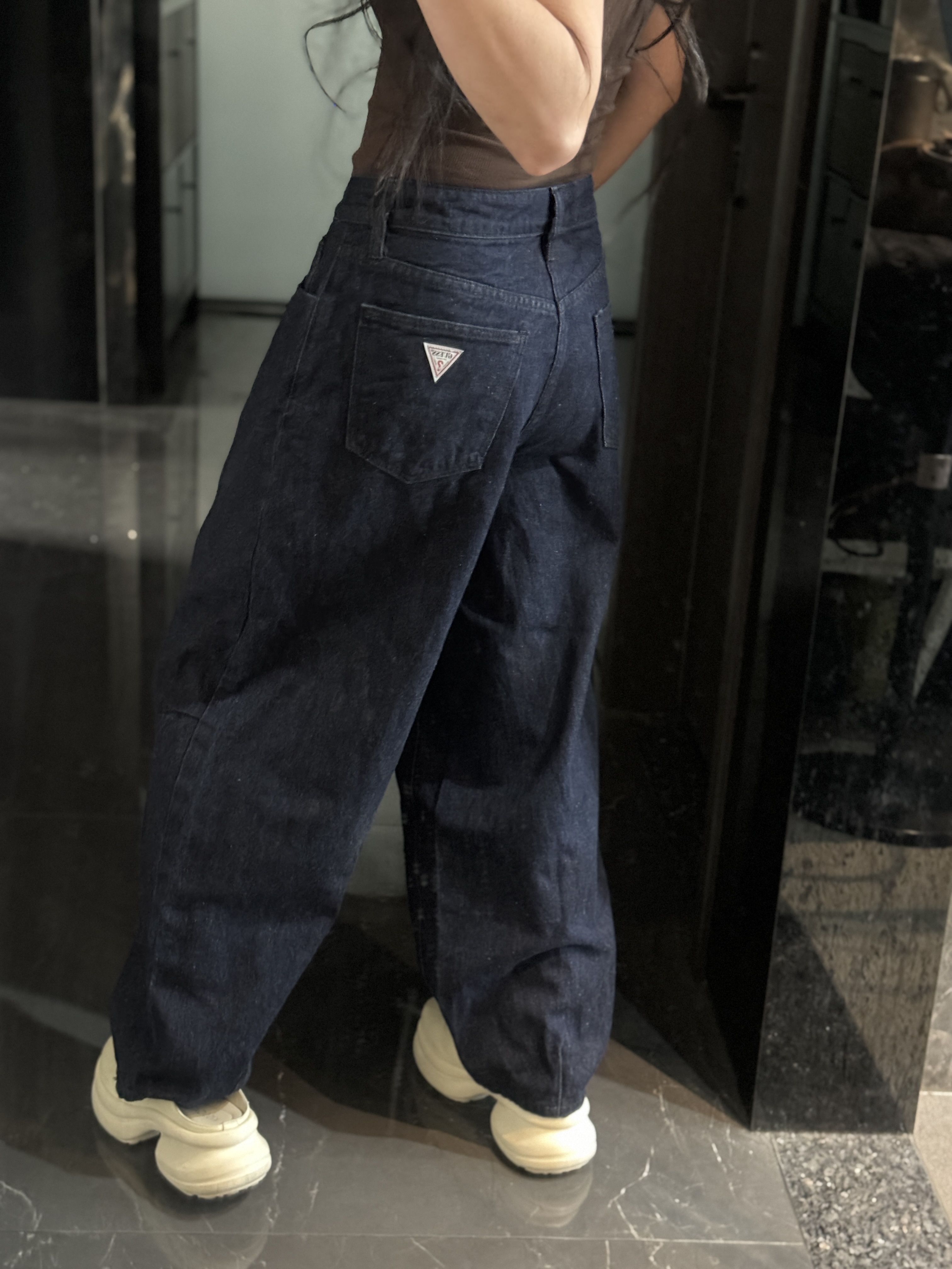 当GUESS经典倒三角遇上复古牛仔蓝,这条直筒裤把美式潮流焊在腿上! 复古丹宁质感 深蓝色牛仔自带岁月沉淀的高级感,采用💯纯棉!直筒版型魔法 高腰+直筒剪裁,藏肉显腿长一把好手,各种身形都能穿出松弛感,是不挑人的百搭神裤;