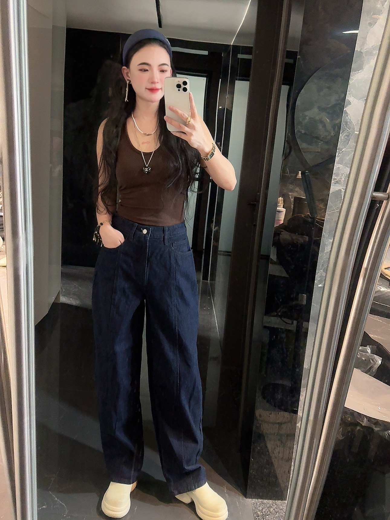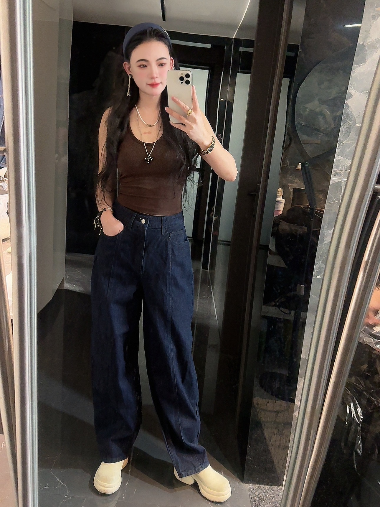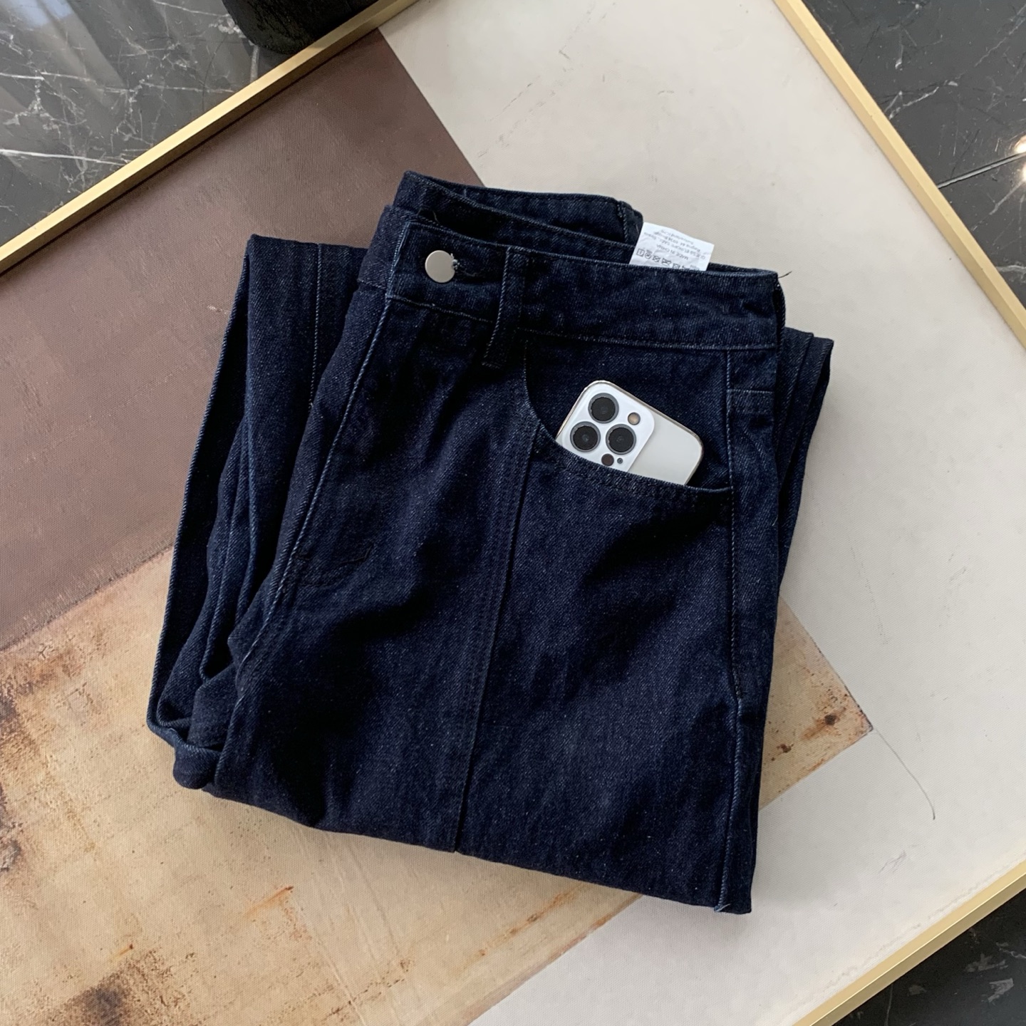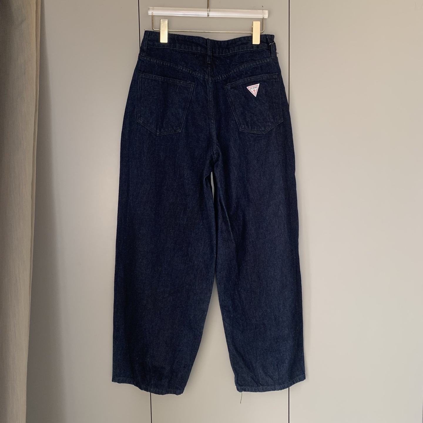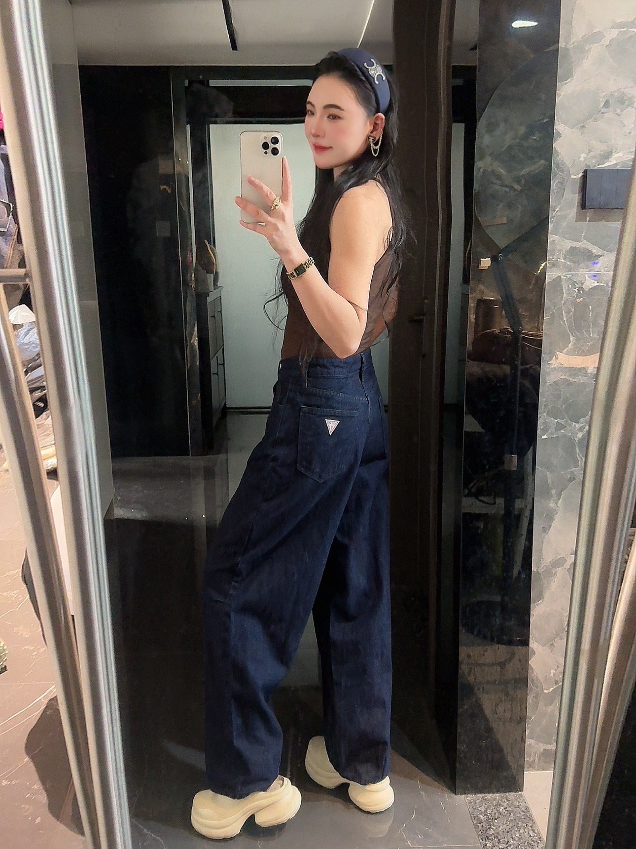 当GUESS经典倒三角遇上复古牛仔蓝,这条直筒裤把美式潮流焊在腿上! 复古丹宁质感 深蓝色牛仔自带岁月沉淀的高级感,采用💯纯棉!直筒版型魔法 高腰+直筒剪裁,藏肉显腿长一把好手,各种身形都能穿出松弛感,是不挑人的百搭神裤;