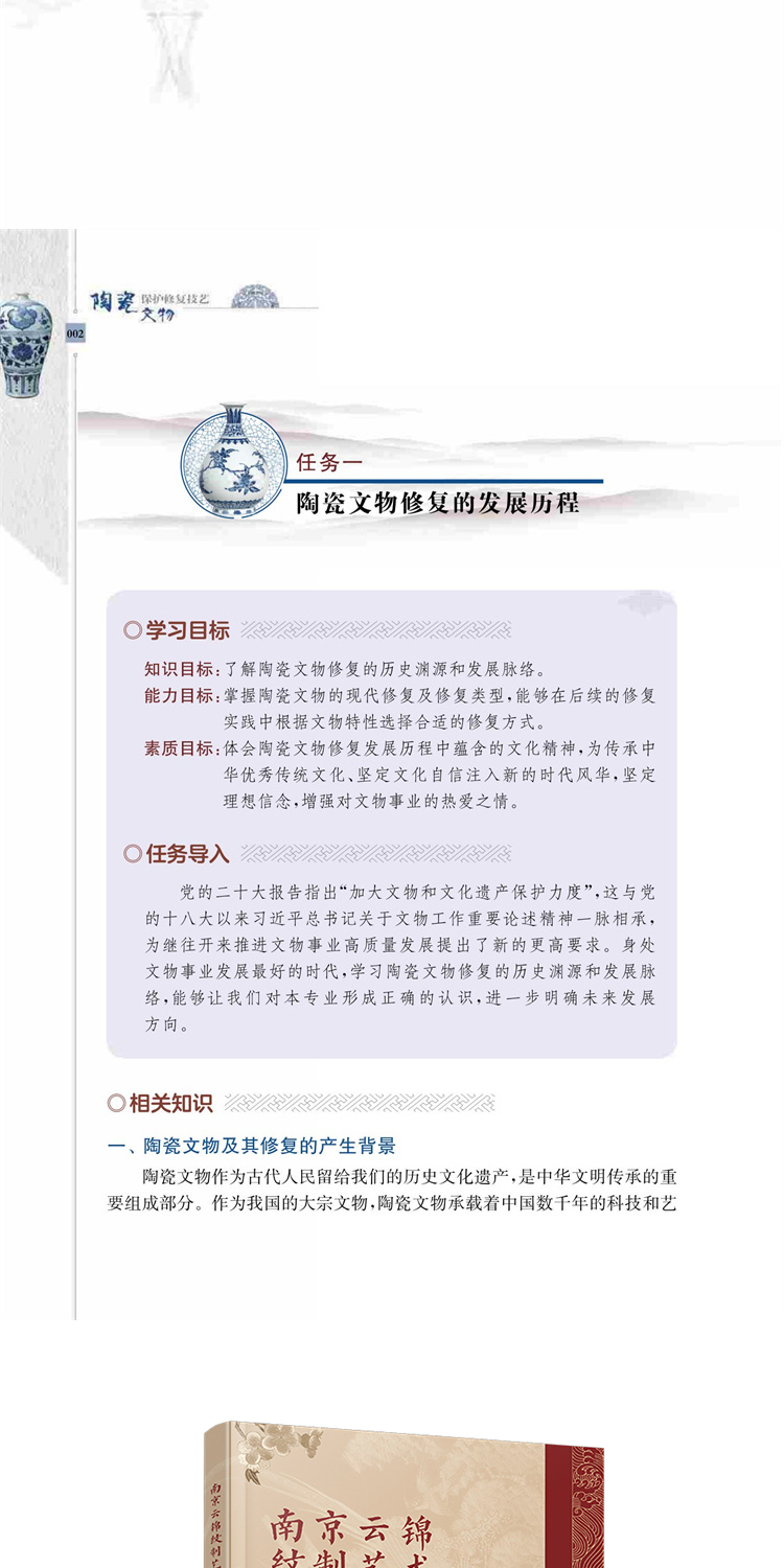 职教 中国书画装裱修复技艺 纸质文物保护修复技艺 南京云锦织造技艺 南京云锦纹制艺术 陶瓷文物保护修复技艺