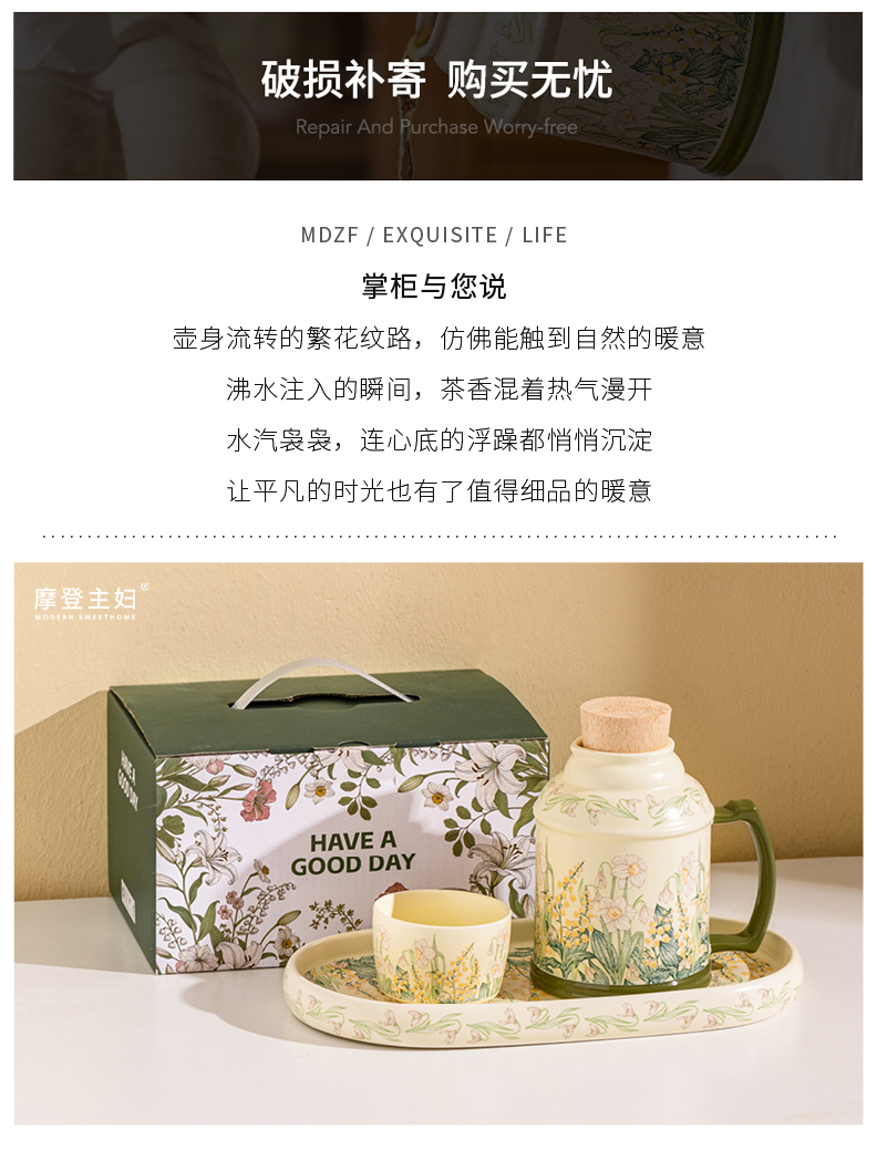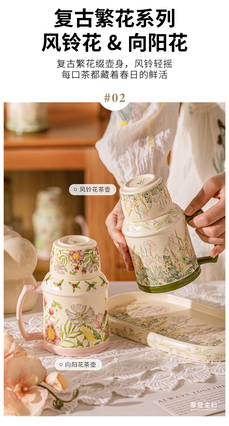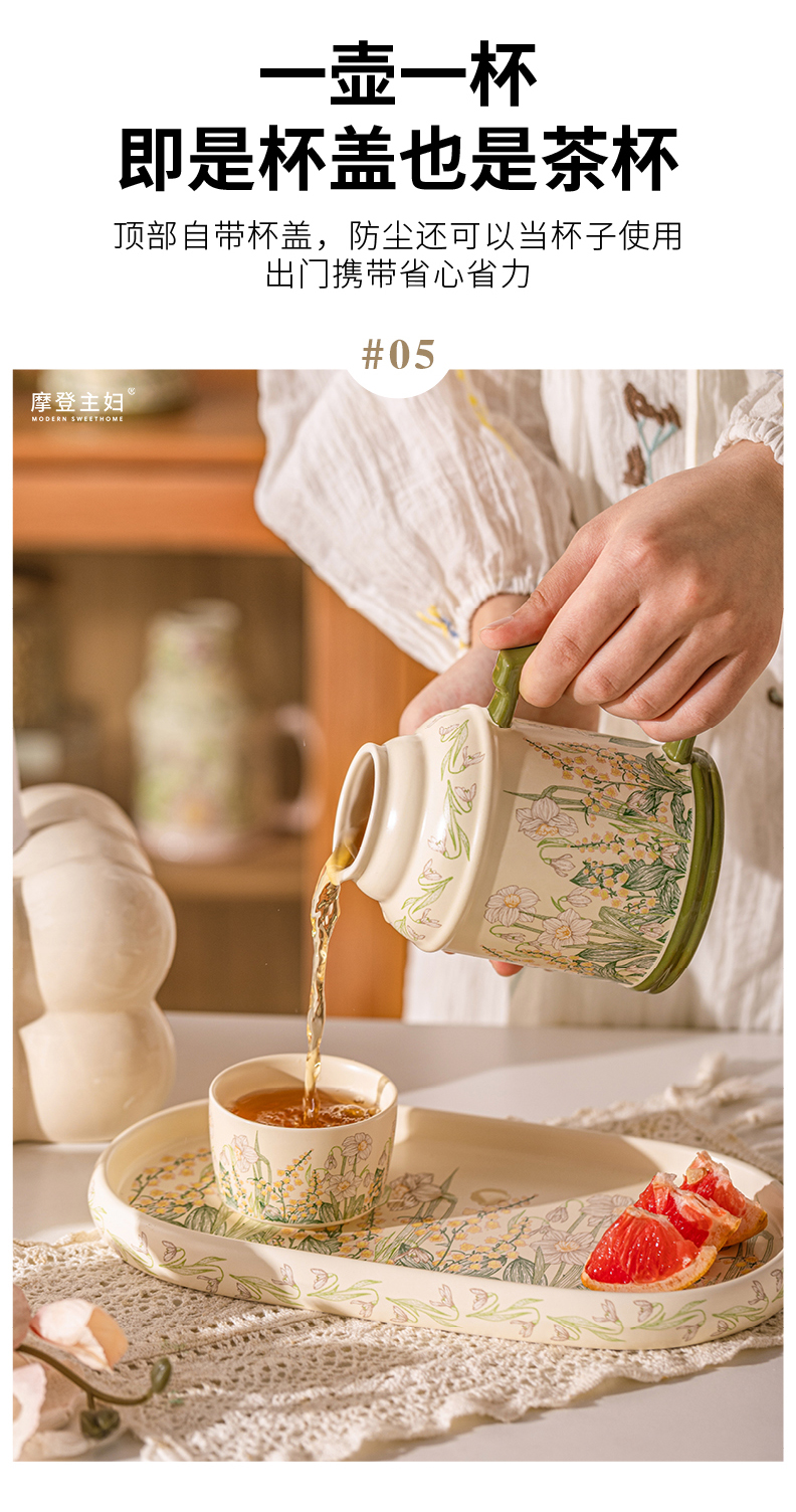 摩登主妇繁华系列陶瓷茶壶一人用一壶一杯茶具套装女2025新款泡茶专用水壶